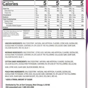 Citric Acid, Maltodextrin, Natural and Artificial Flavors, Aspartame, Salt, Acesulfame Potassium, Magnesium Oxide, Cellulose Gum, Disodium Phosphate, Pectin, Guar Gum, Red 40, Blue 1 (contains 2% or less of these).