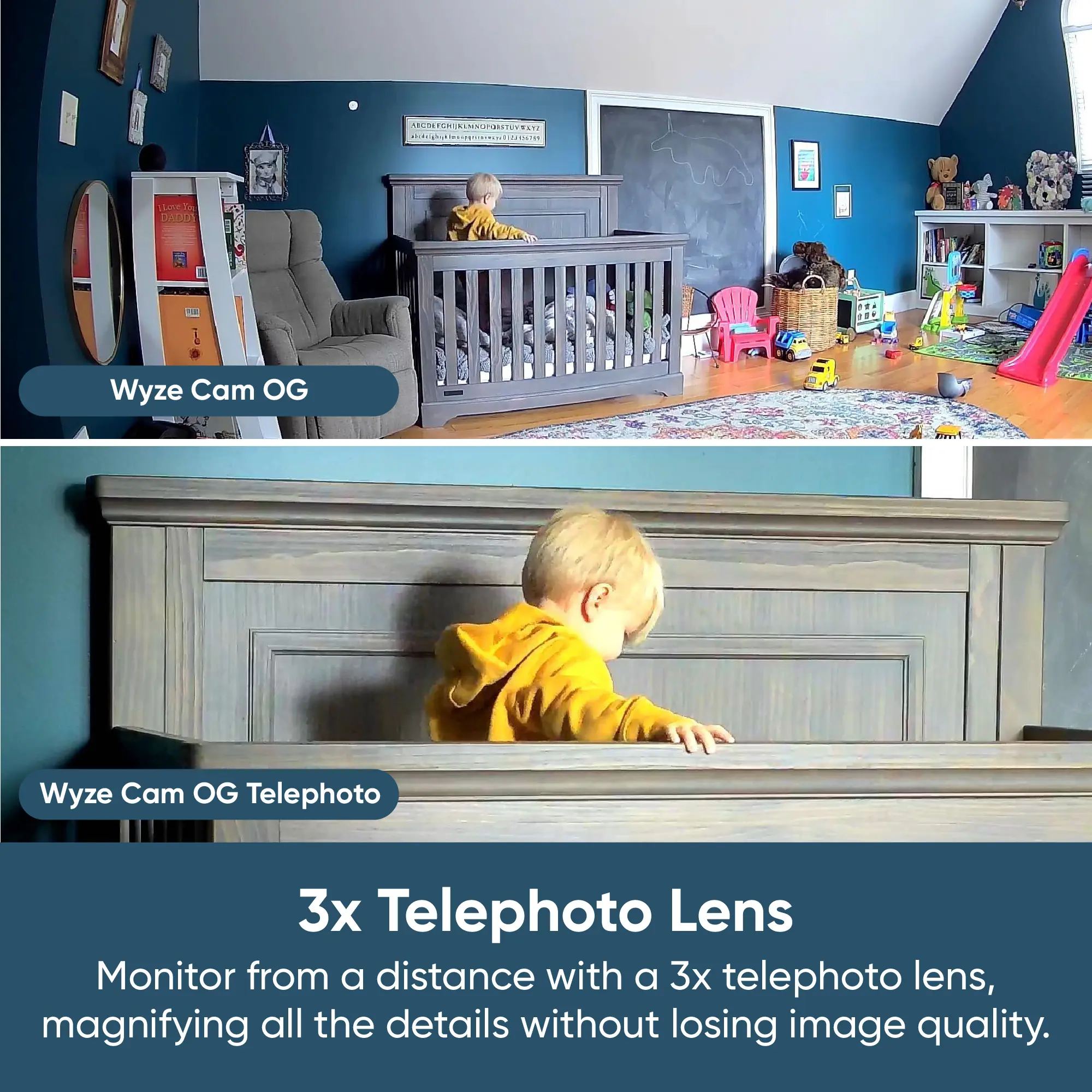 Please note that Wyze Cam OG Telephoto is a ZOOMED security camera, meant to record objects from a distance. The Stack Bundle includes both a Wyze Cam OG Telephoto (zoomed), and a Wyze Cam OG (regular).