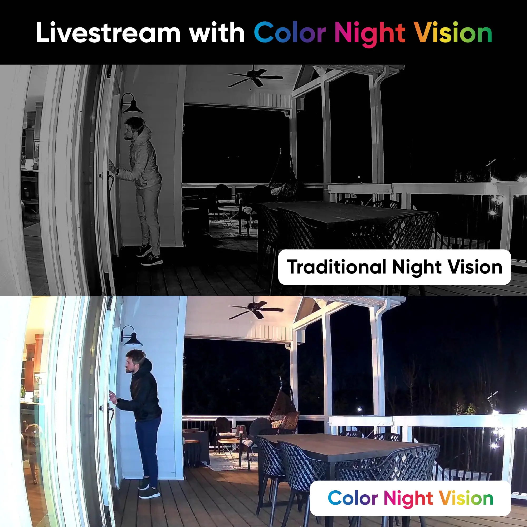 ·Color Night Vision — The starlight sensor amplifies low light and shows dark areas in vivid, unbelievable detail.