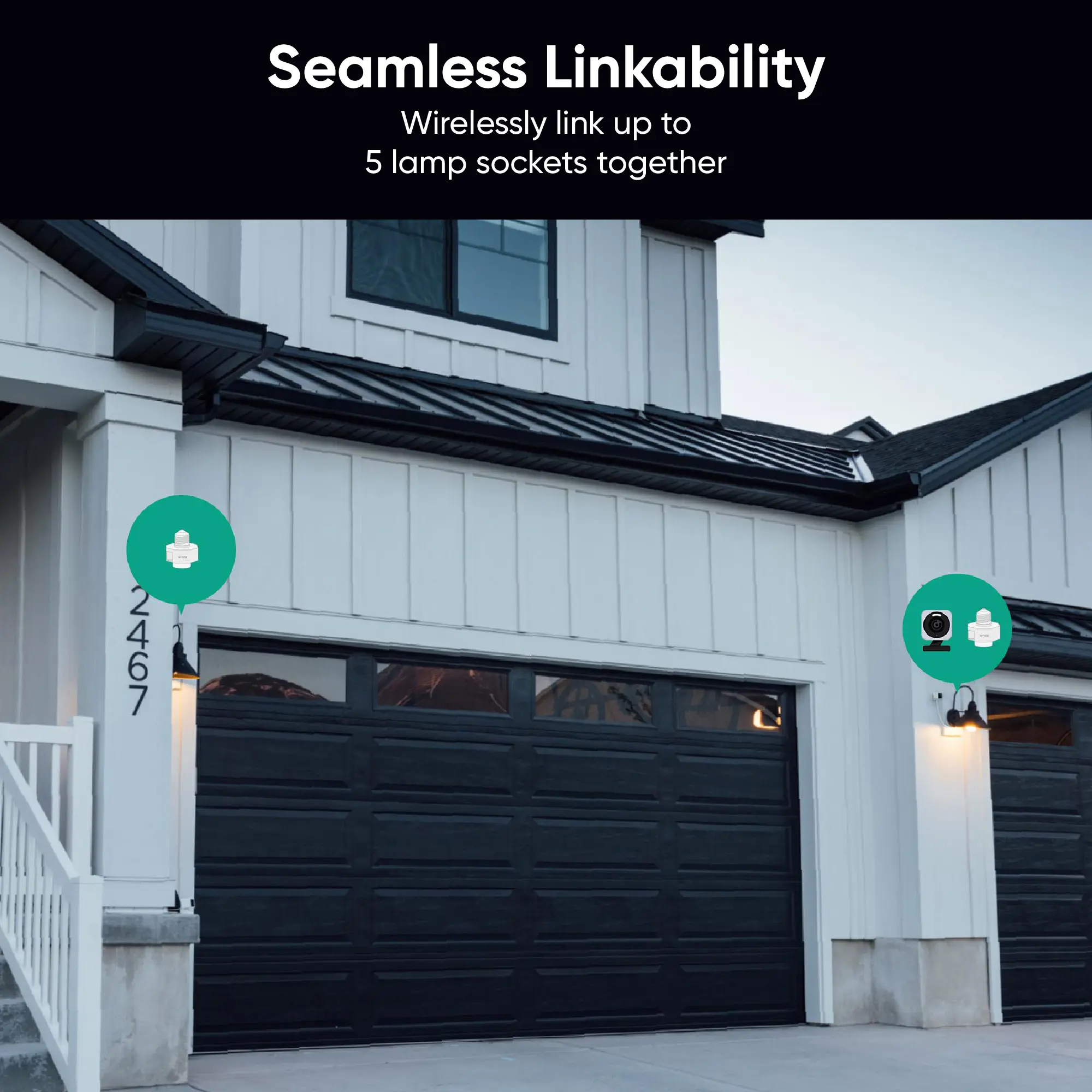 ·Wirelessly link up to 5 lamp sockets together to synchronize and control your exterior lighting from anywhere in the Wyze app. Automatically turn your lights on at sunset and off at sunrise