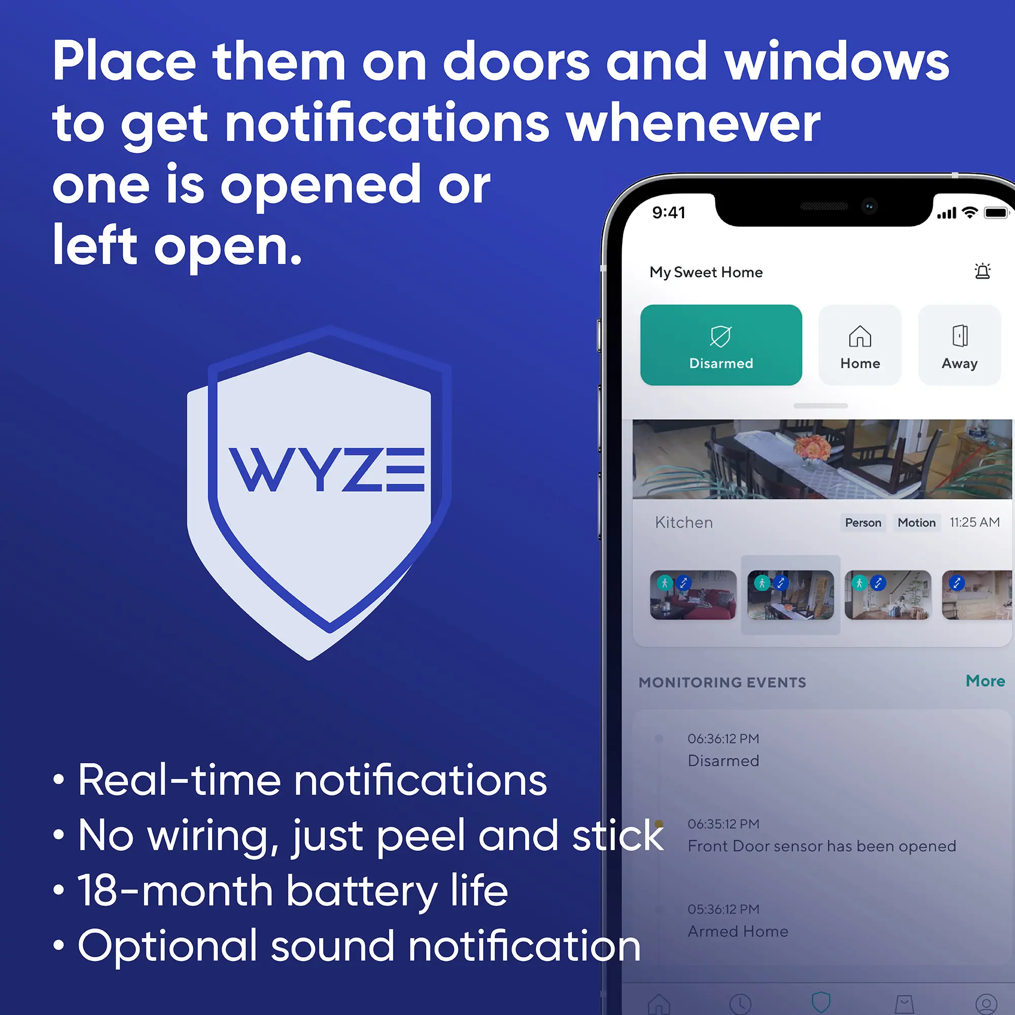 Note: Requires the Wyze Home Monitoring system or the Wyze Sense Hub to function. Not compatible with standalone Wyze cameras.