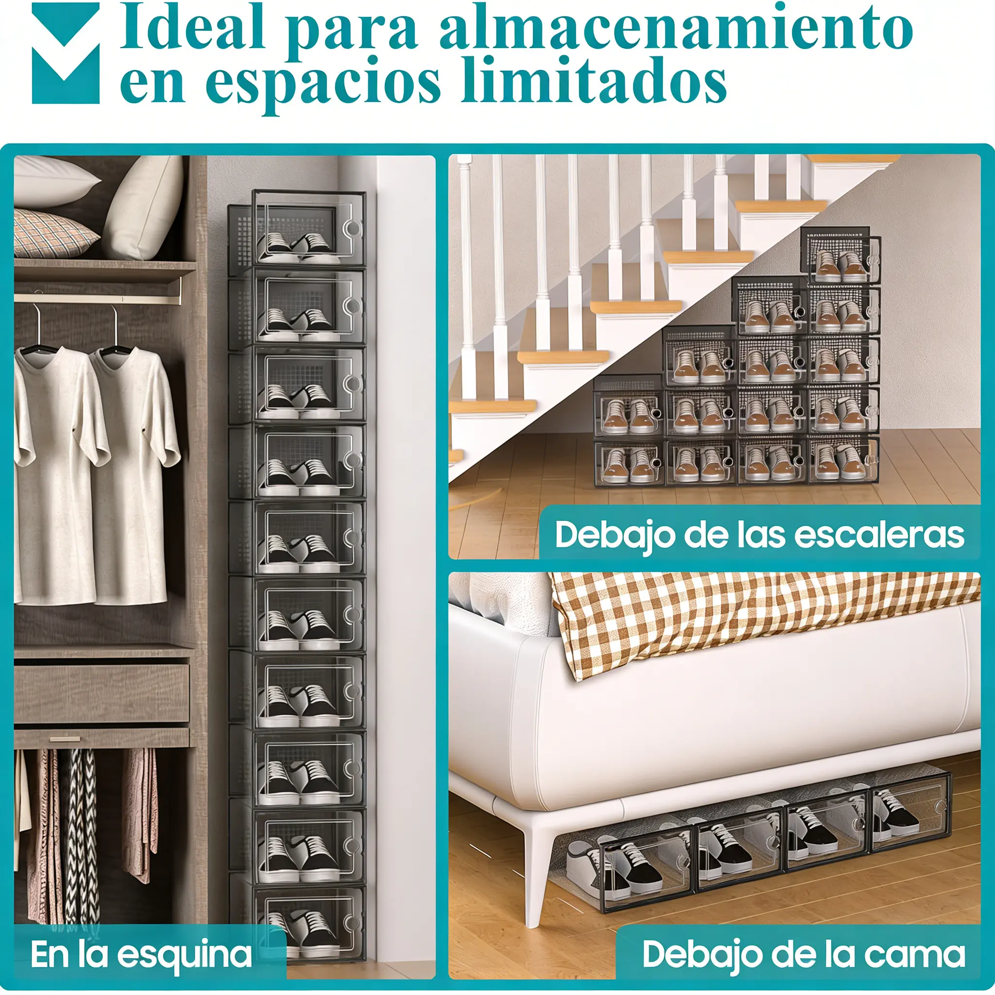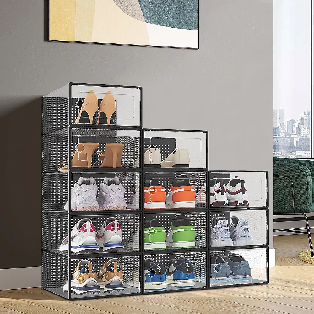·Fits the Whole Family: These shoe storage boxes fit shoes up to Men's 11 / Women's 12, plus all the kids' shoes. One shoe organizer solution for everyone