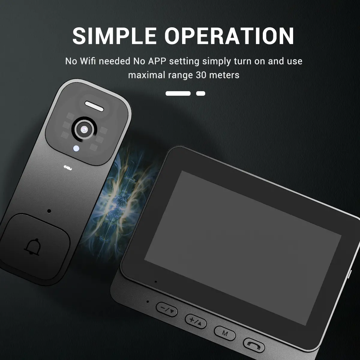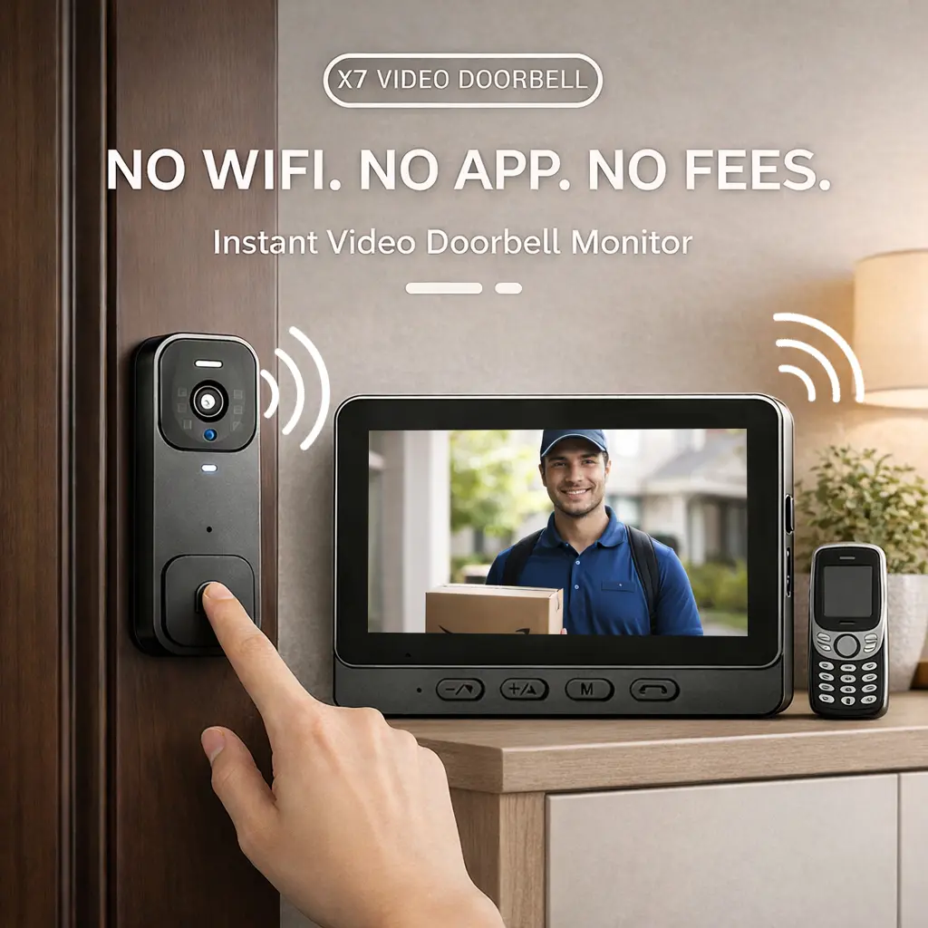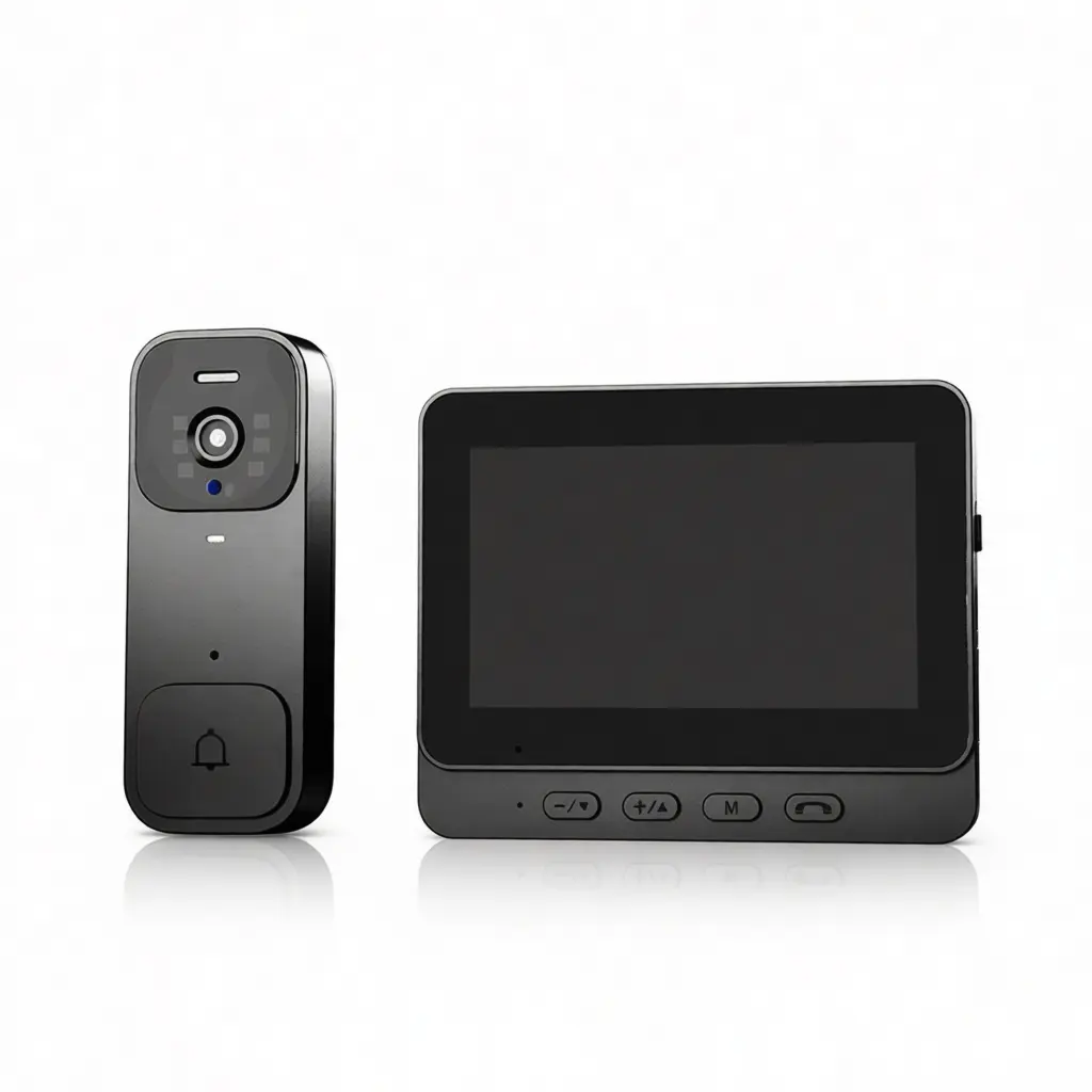A: No, this doorbell does not connect to a smartphone or mobile app. The system includes two parts: a doorbell camera and an indoor monitor. When the doorbell button is pressed, the indoor monitor will display the live video from the outdoor camera. Video recordings are stored on an SD card.
