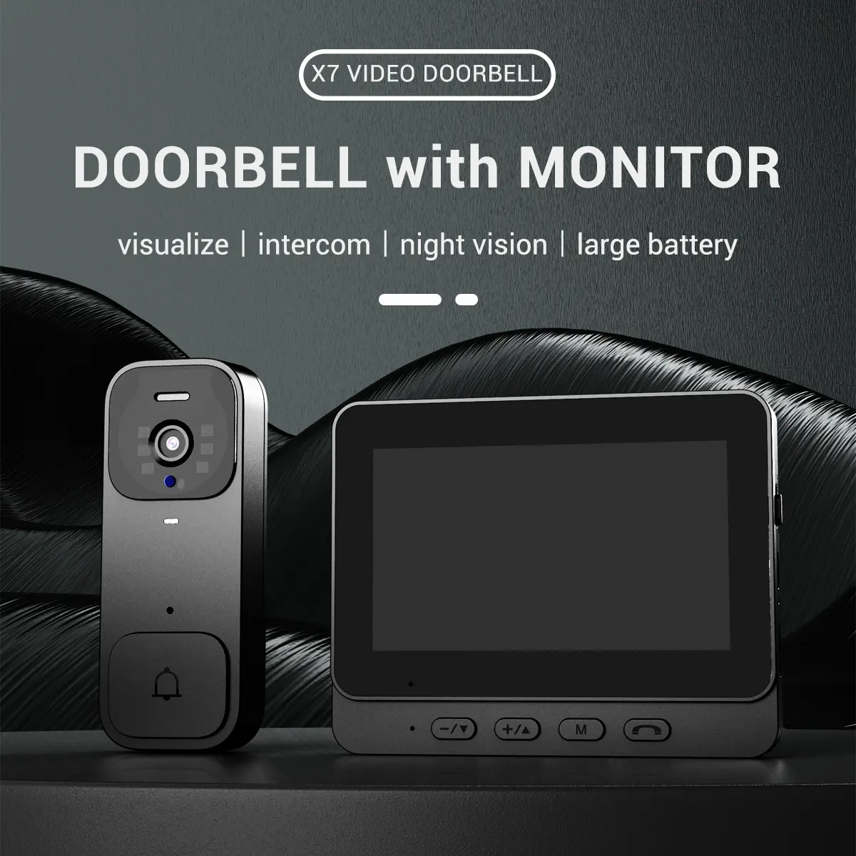 A: Both the doorbell and the monitor have built-in rechargeable lithium batteries.