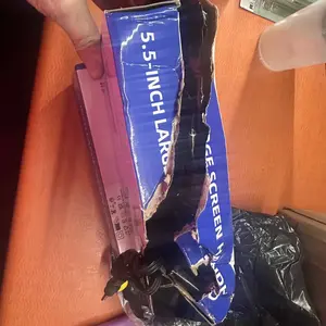 Package in a plastic bag with No info of items being fragile or glass screens...box is smashed all in and has holes were something pierced the box but the bag shipped in is not pierced with holes which makes me believe that it was damaged before it got shipped