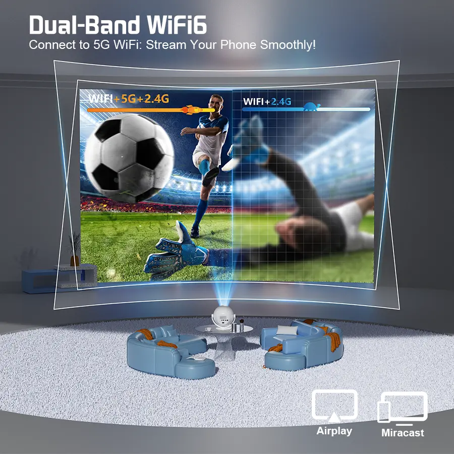 ·2.4/5G WiFi Smart Projector: Enjoy seamless connectivity with 2.4/5G WiFi, allowing for quick and easy setup and operation.
