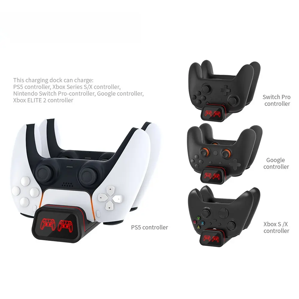 Xbox/PS5/Switch Pro Controller Dual Charging Base - - Compatible with Xbox/PS5/Switch Pro Controllers (2-Port Fast Charge)Metal Contact Fast Charging + ABS Fireproof Shell - Safe and Durable Multi-Platform Charging Base