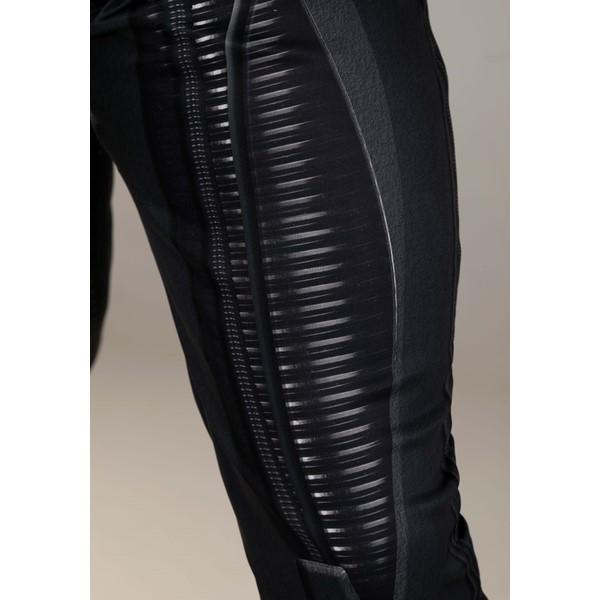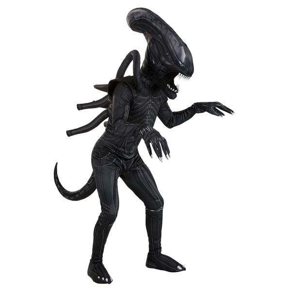 Transform into the ultimate alien legend with this officially licensed, exclusive Alien Premium Xenomorph Costume for Adults! The unisex jumpsuit zips up the back and is made of breathable jersey knit fabric. A stuffed tail is sewn to the jumpsuit's seat. The outfit is printed all over with graphics that resemble a xenomorph's outer markings. Foam-backed gloves with elongated "claws" and matching foam-backed shoe covers conceal your human hands and feet. The foam-backed hood features a view port through the character's fang-lined mouth so that you can see where you're going.