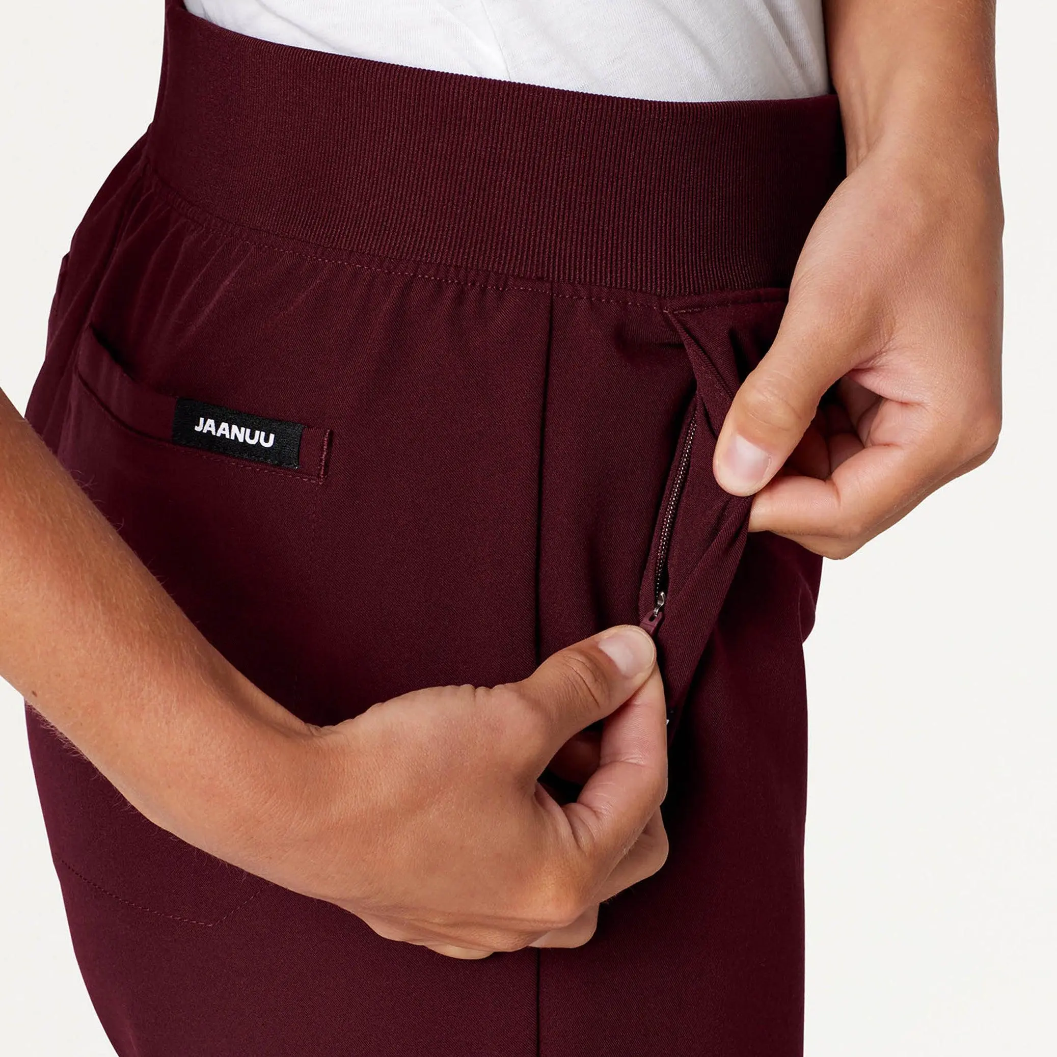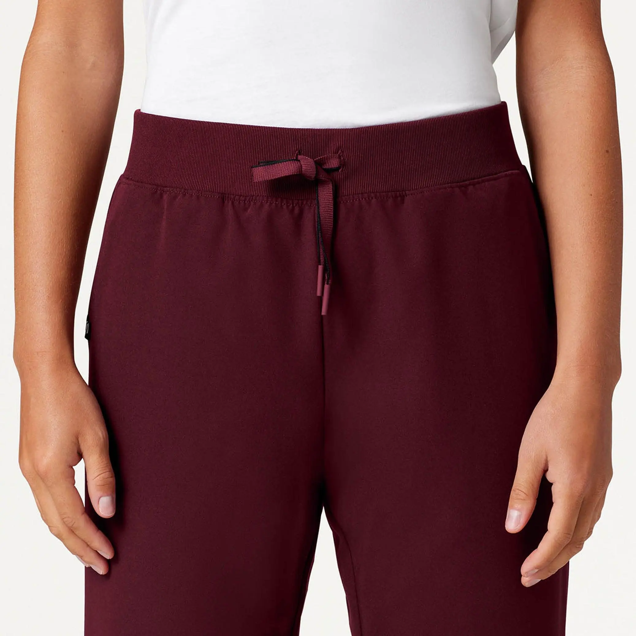 5. Xenos Essential Knit-Waist Scrub Pant - Burgundy Pocket Hem