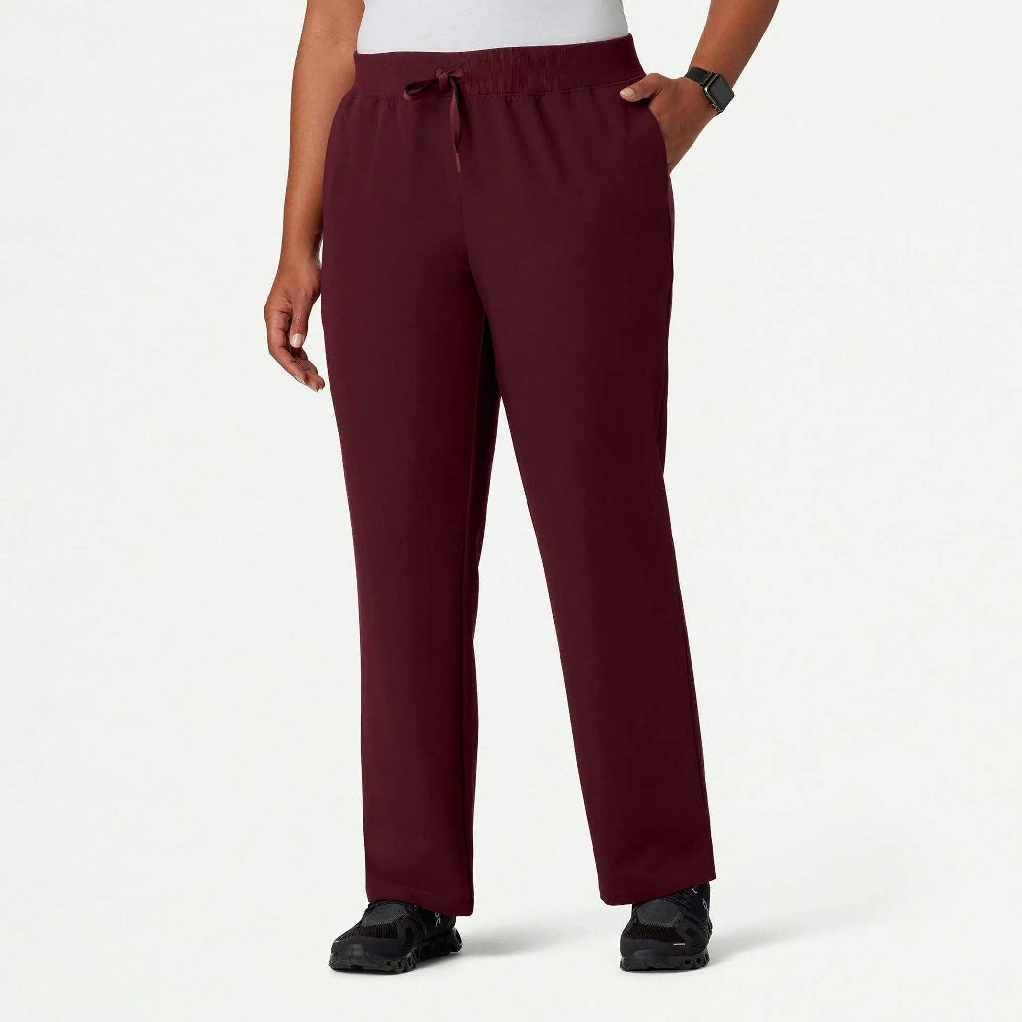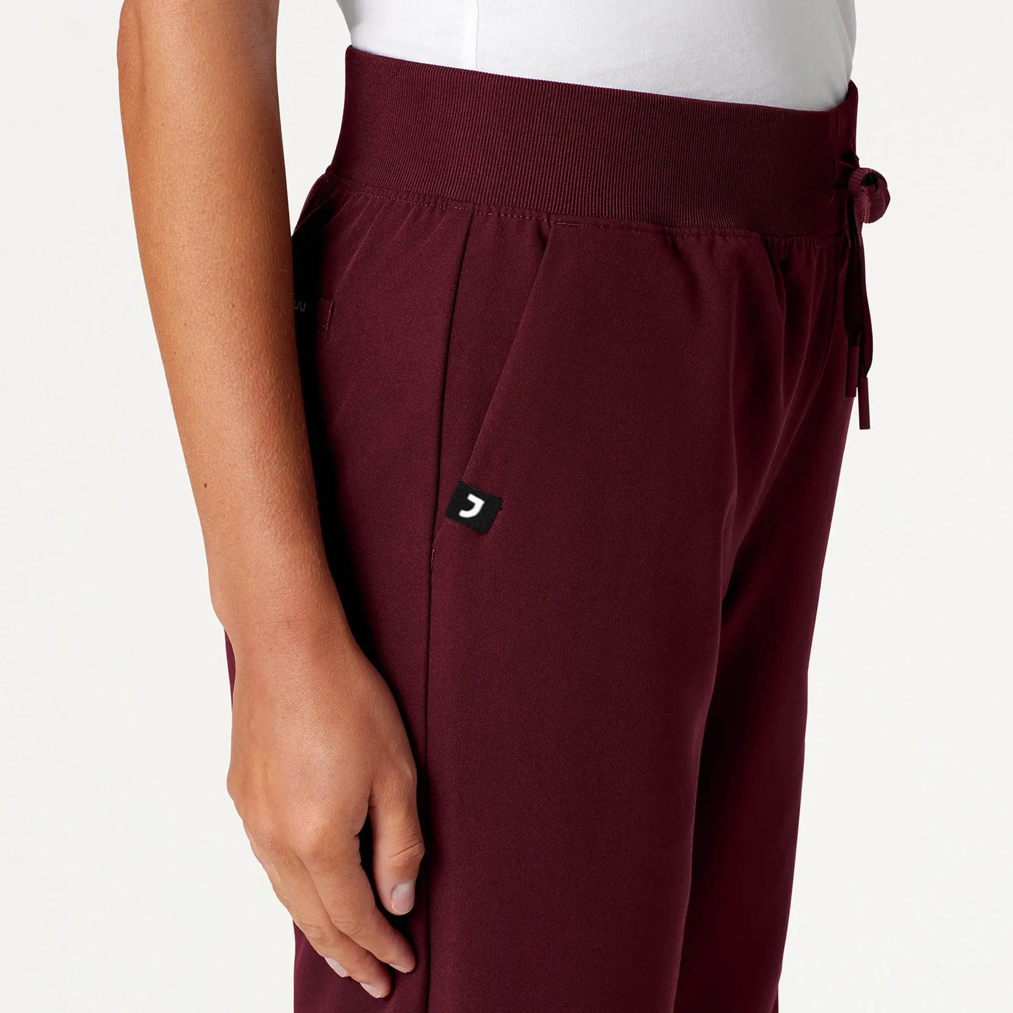 Xenos Essential Knit-Waist Scrub Pant - Burgundy Pocket Hem