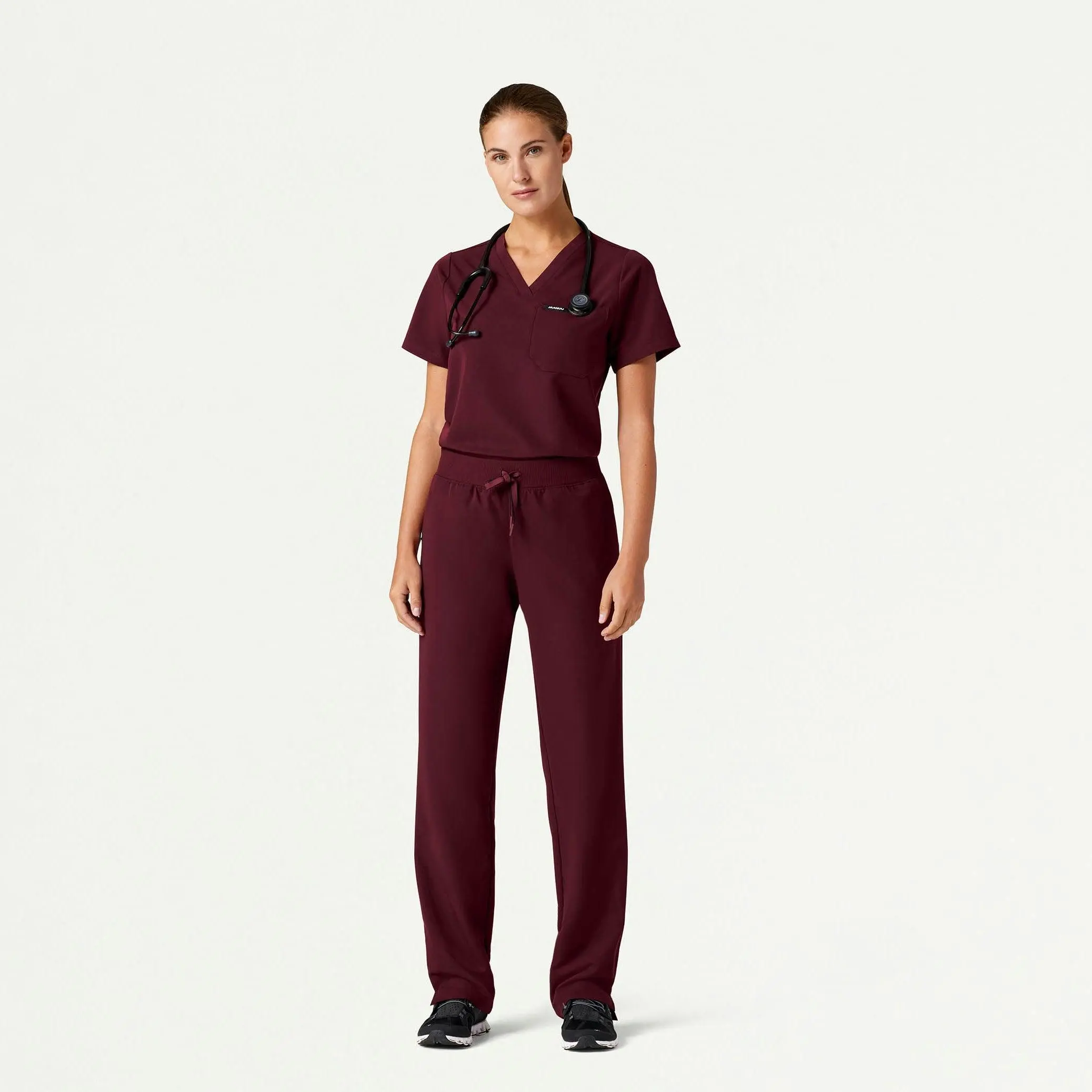 Essential and timeless pant with a soft waistband and straight leg. This style pairs best with JAANUU UltraLAST™ scrub tops.