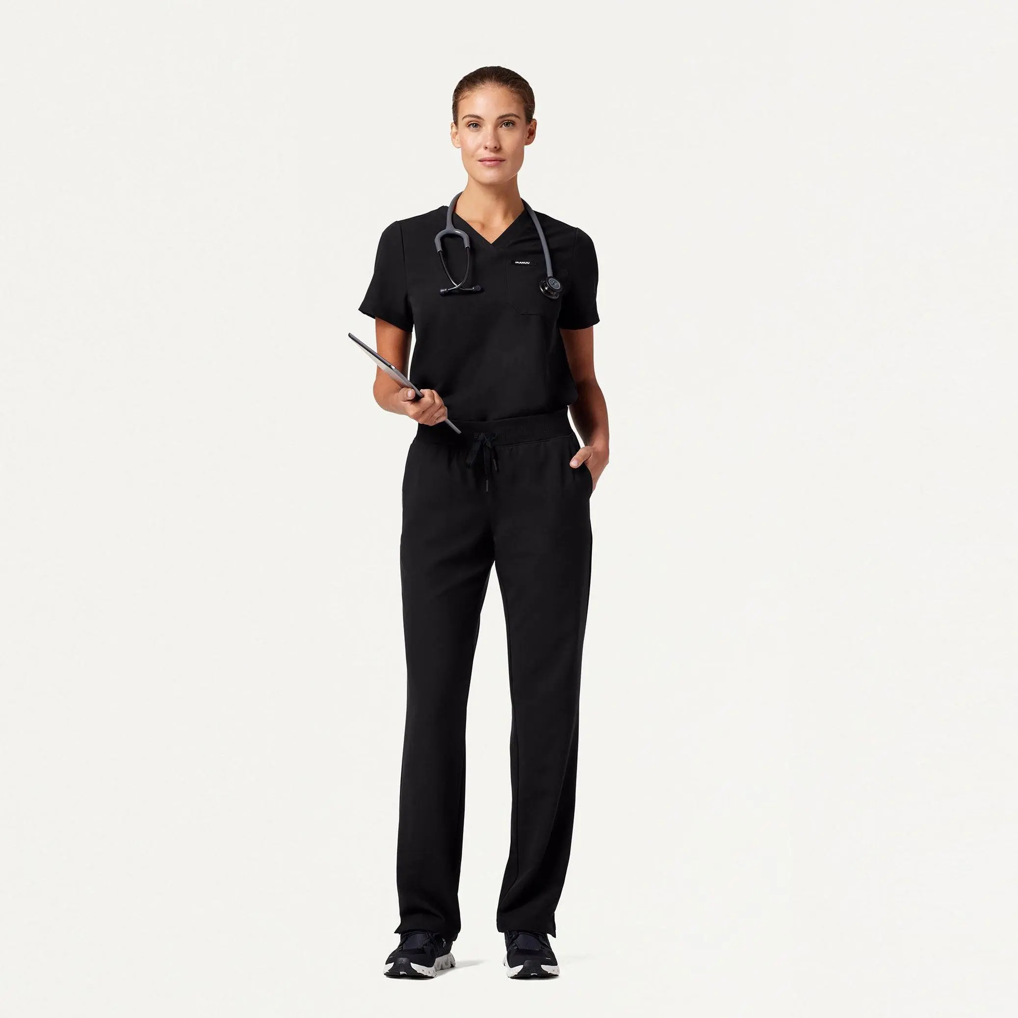 Essential and timeless pant with a soft waistband and straight leg. This style pairs best with JAANUU UltraLAST™ scrub tops.