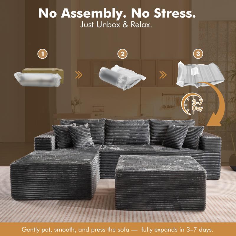 🔧 No Assembly Required: Say goodbye to assembly hassles! Our modular cloud lounge boosts springiness and poof in just 72 hours. Enjoy the ease of a no-assembly nirvana without compromising on style or comfort.
