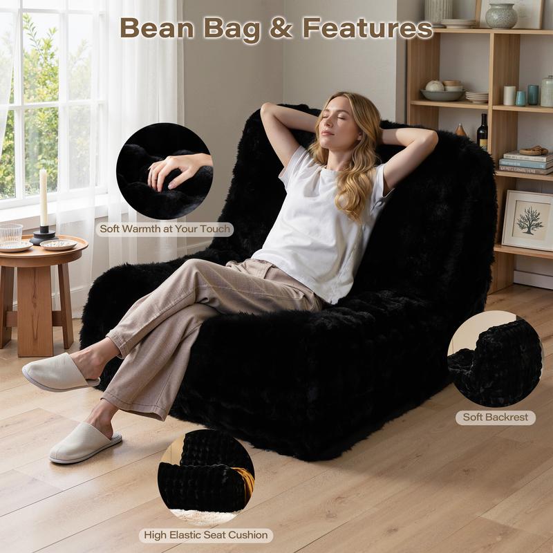 Crafted with fluffy faux fur, this bean bag couch offers an ultra-soft touch. Its premium material ensures lasting coziness for relaxation, reading, or gaming. Perfect for adults and teens, it provides ample space for unwinding or sharing.
