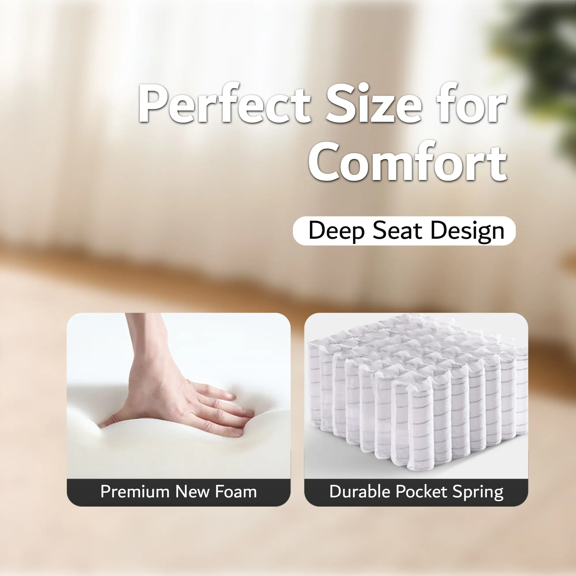 Durable and Stable:Built with high-density foam and pocket springs for long-lasting support. Holds up to 400 lbs without losing shape.
