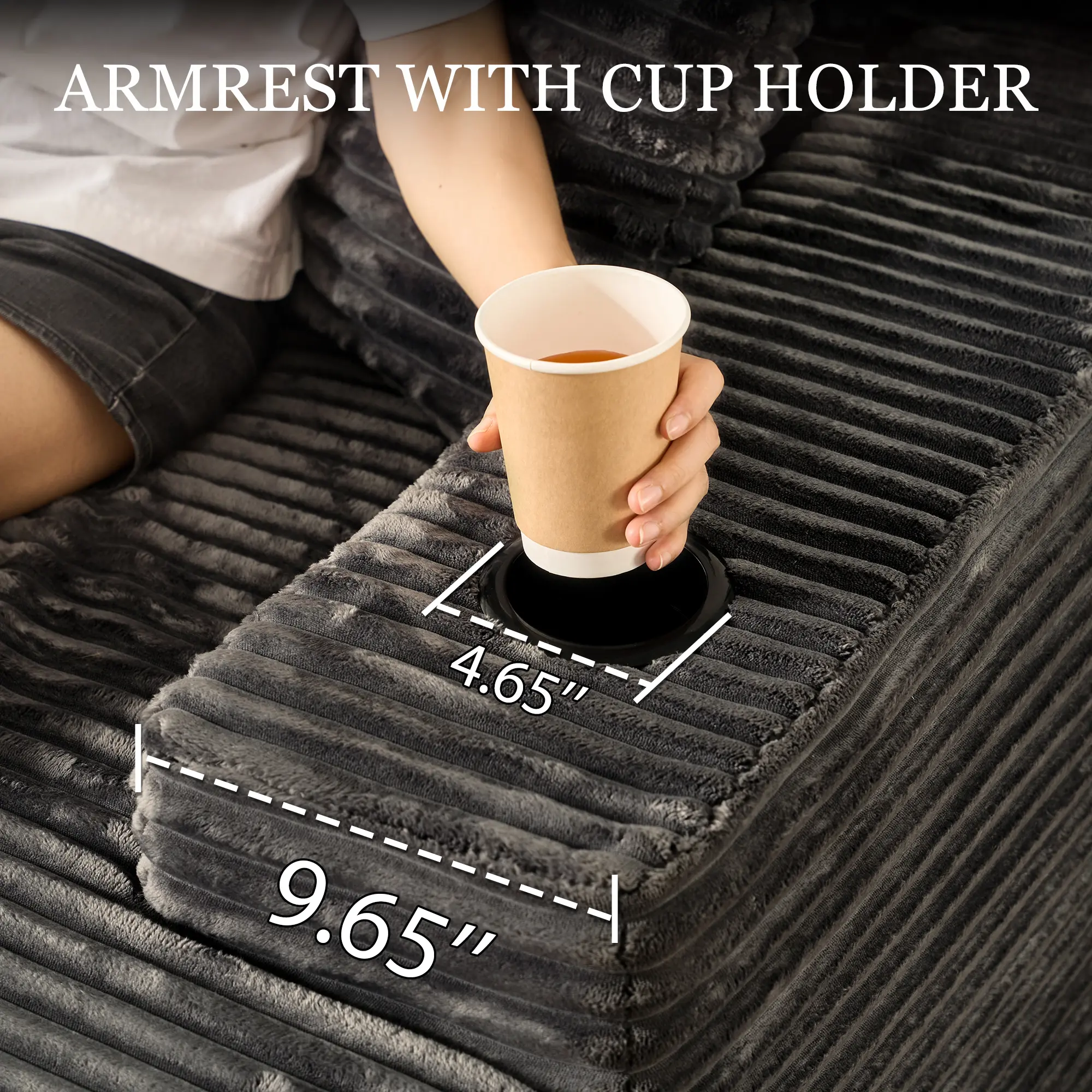 Black Plush Corduroy , With Cup Holder