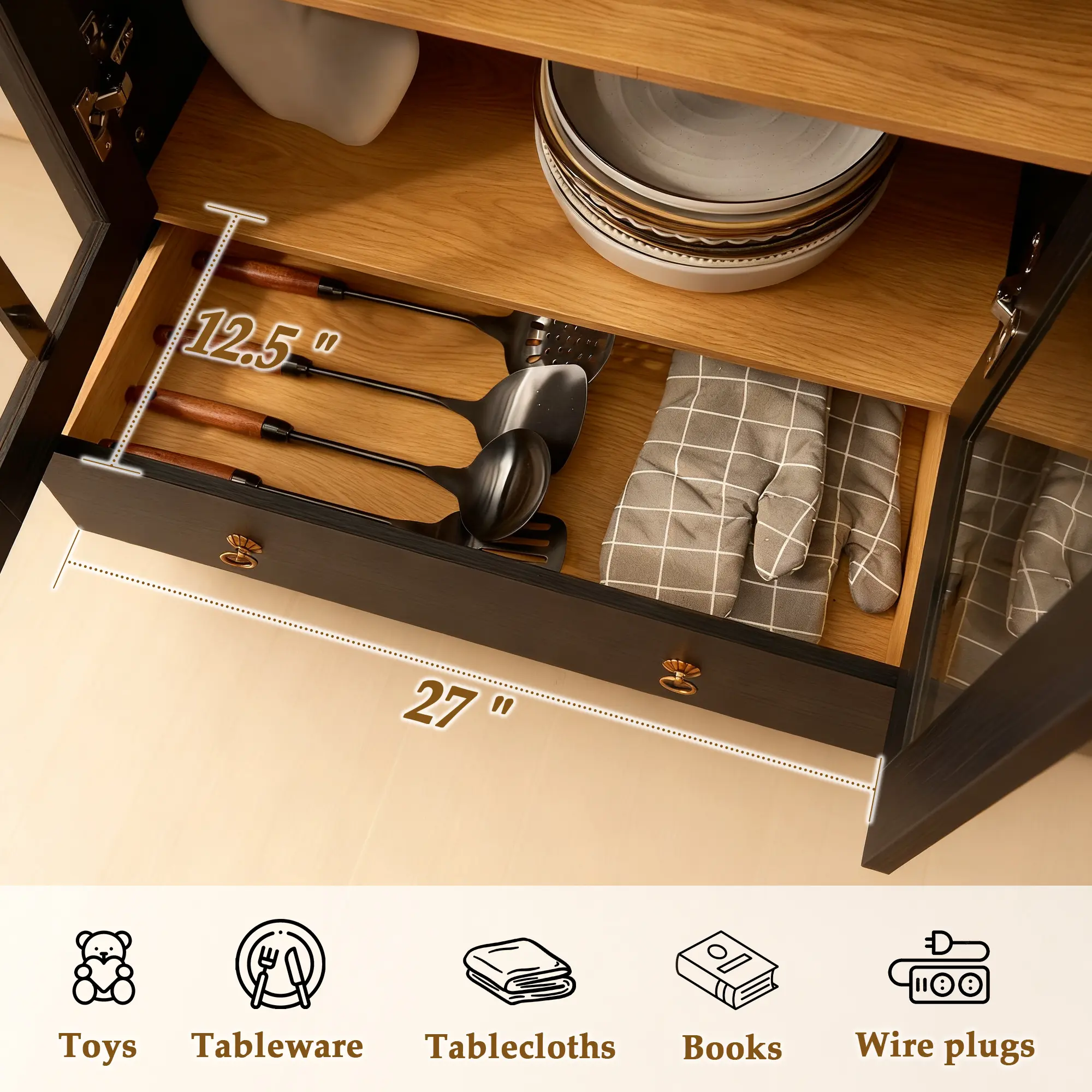This cabinet is an ideal solution for storage and display. Its versatile design makes it a useful addition to any room. Whether for kitchens, living rooms, or home offices, this pantry cabinet provides practical storage and display options.