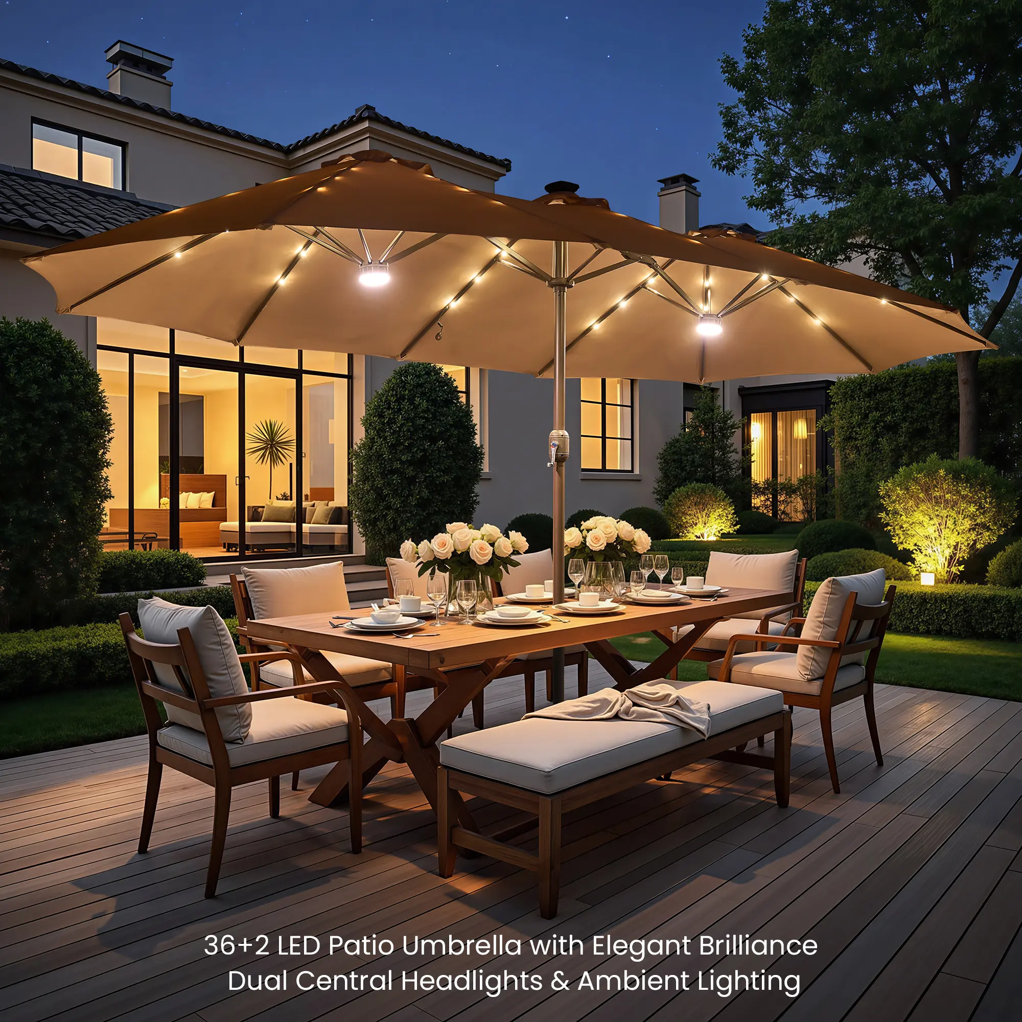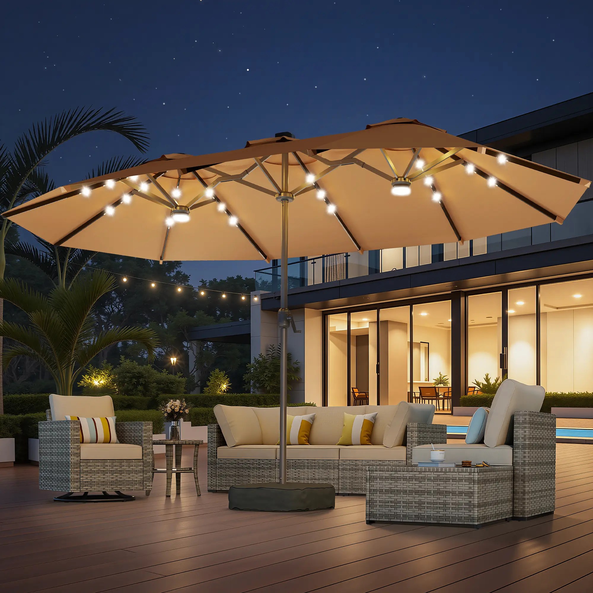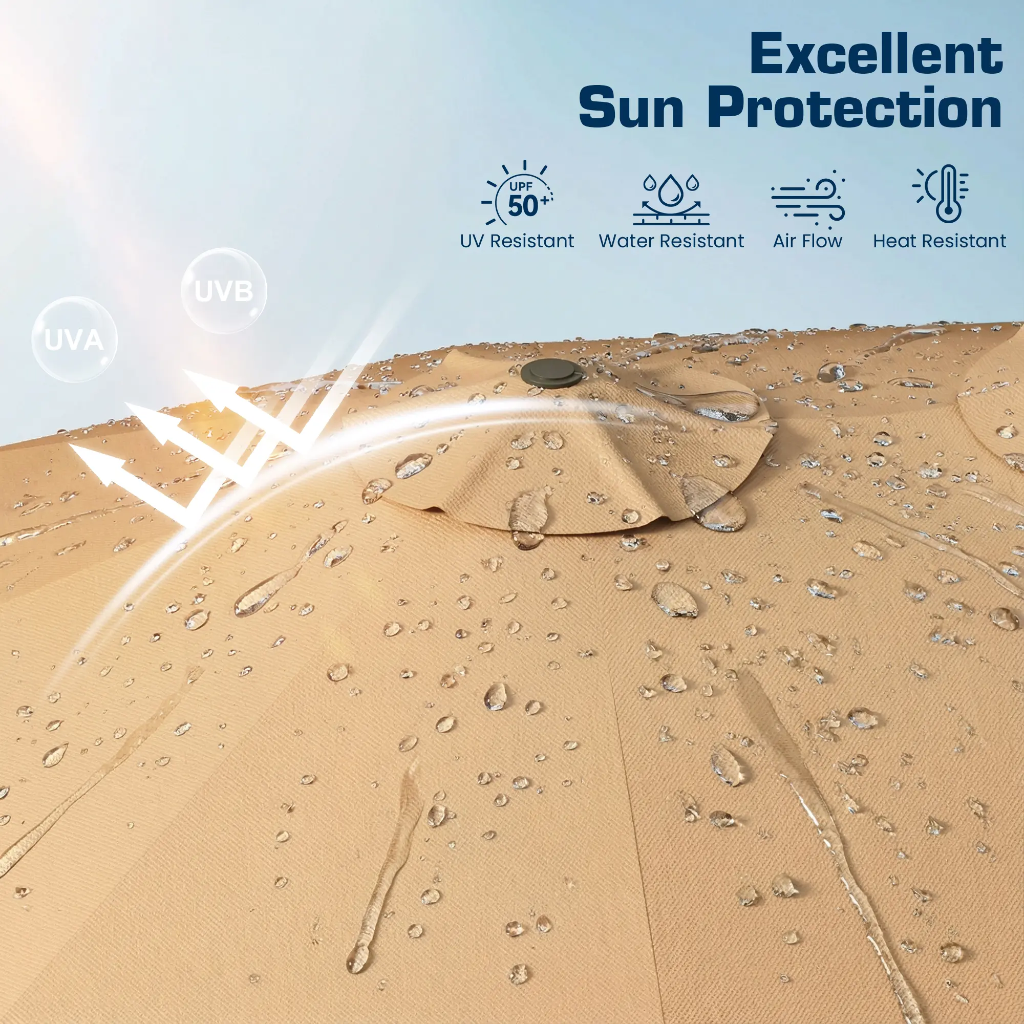 ·High-Quality Fabric: The canopy of our PHI VILLA double-sided outdoor umbrella is crafted from 100% polyester. It’s waterproof, breathable, fade-resistant, UV protective, and easy to clean, ensuring it lasts through the seasons