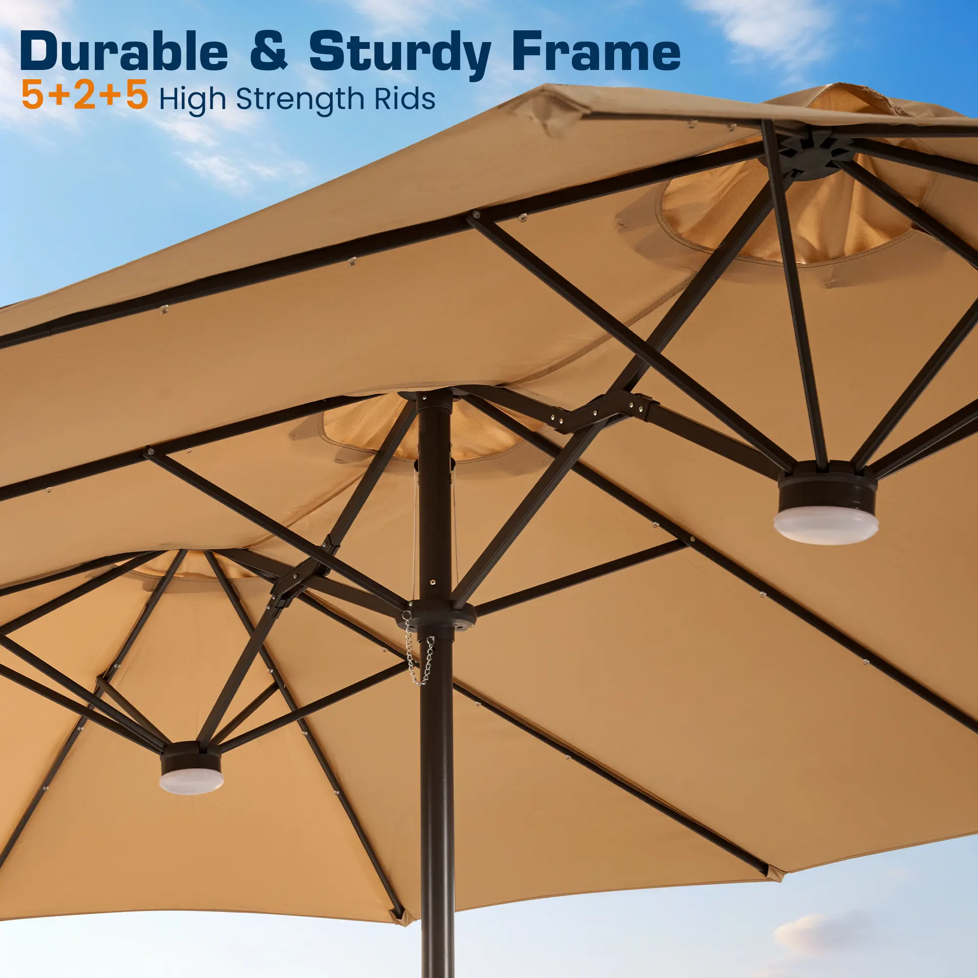 ·Durable Frame Construction: Built to last, this large umbrella features a powder-coated steel pole and 12 rust-proof ribs for enhanced durability. The pole diameter is 1.9 inches (48mm), providing robust support against the elements