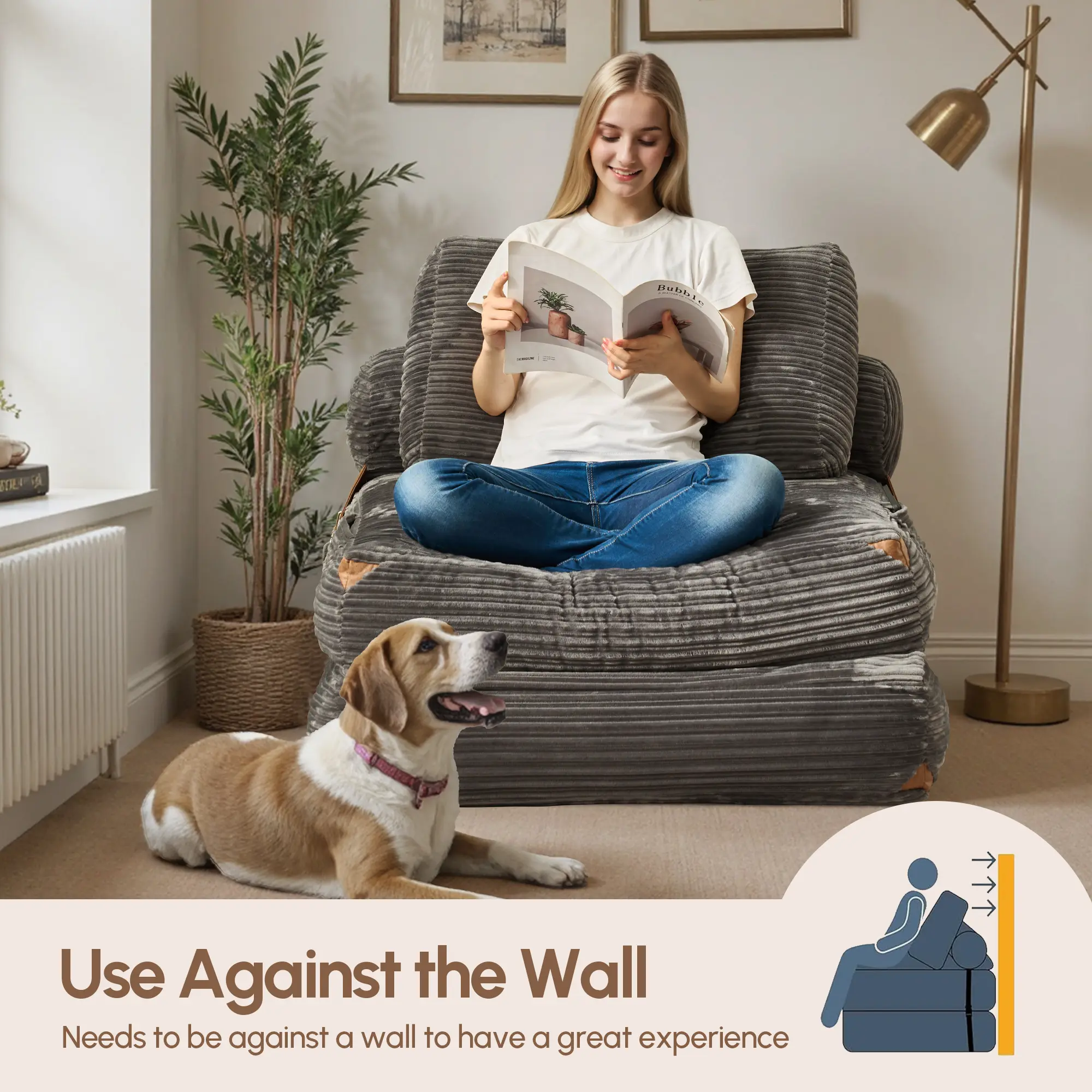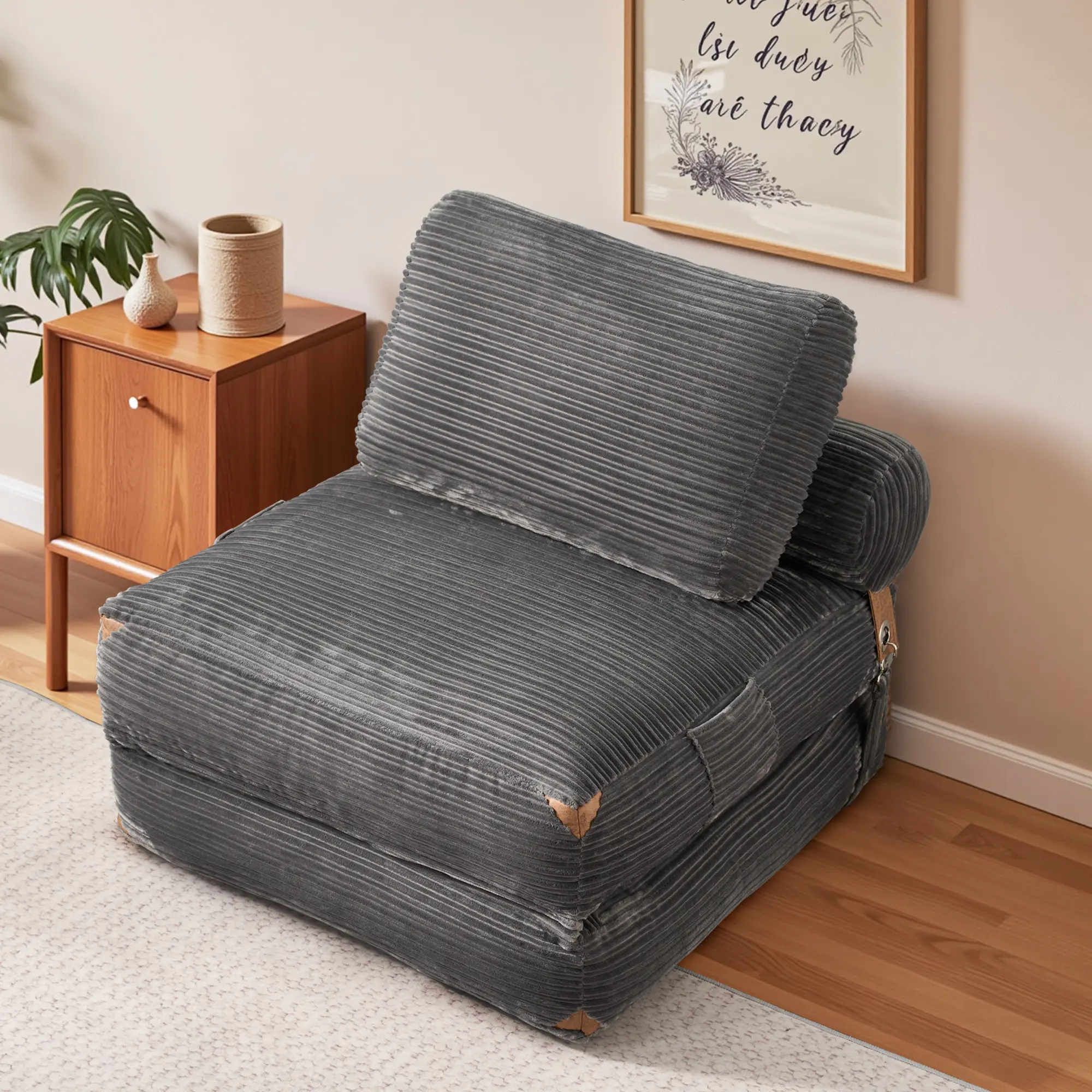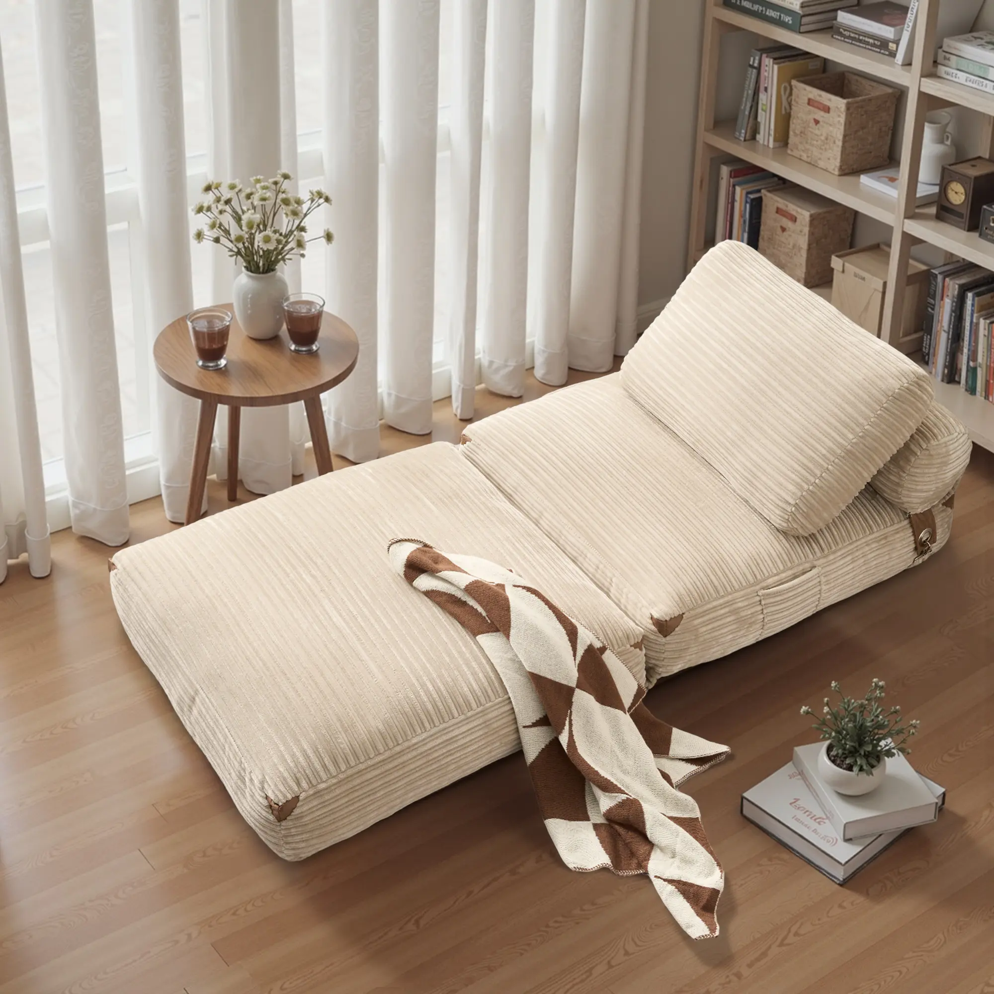 Effortlessly transforms from a comfy floor chair into a lounge recliner or a cozy guest bed. Perfect for small spaces, apartments, dorms, or anyone who loves multifunctional furniture. 🛋️
