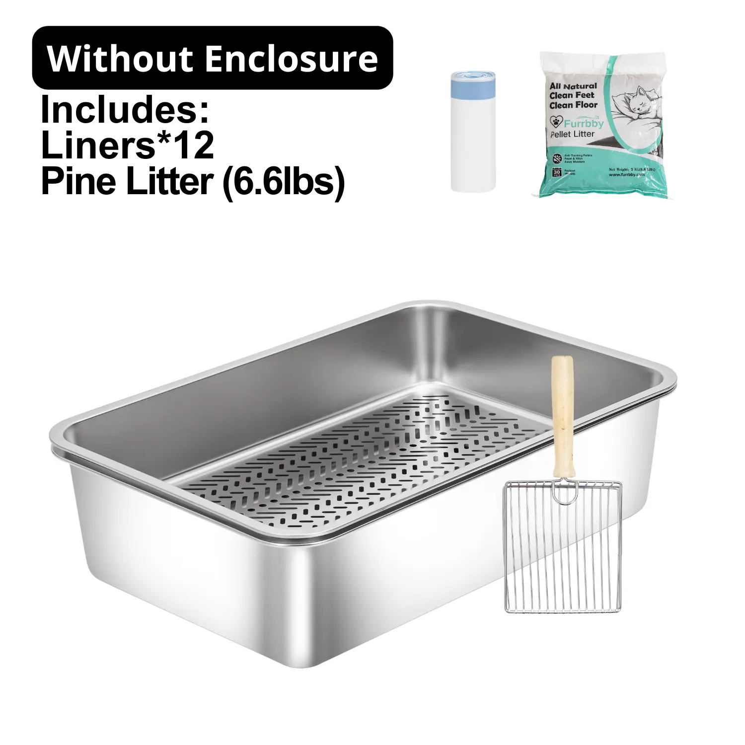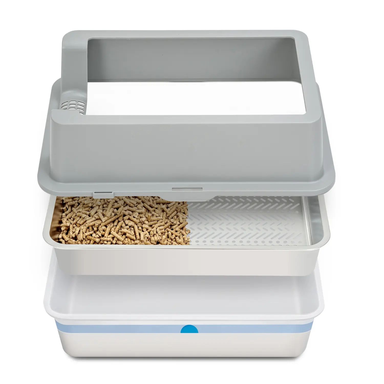 This stainless steel litter box comes with a filter layer, whose sifting holes are suitable for most pine pellet sizes while allowing dissolved litter to easily sift. The base layer is equipped with a custom-fitted liner.