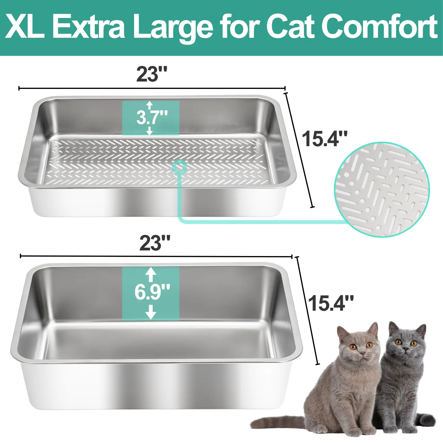 Unlike traditional plastic sifting litter boxes, stainless steel resists rust, odor, and scratches, offering long-lasting performance and effortless cleaning.