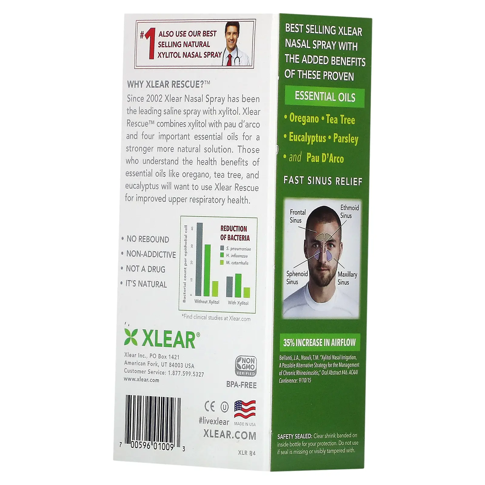 Xlear Rescue Nasal Spray with Xylitol, Fast Relief, 1.5 fl oz (45 ml)
