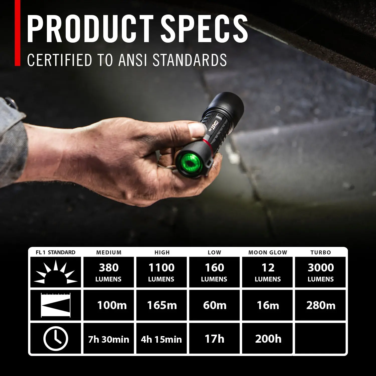 COAST XP11R Rechargeable Dual Power LED Flashlight, 3000 Lumens, Black