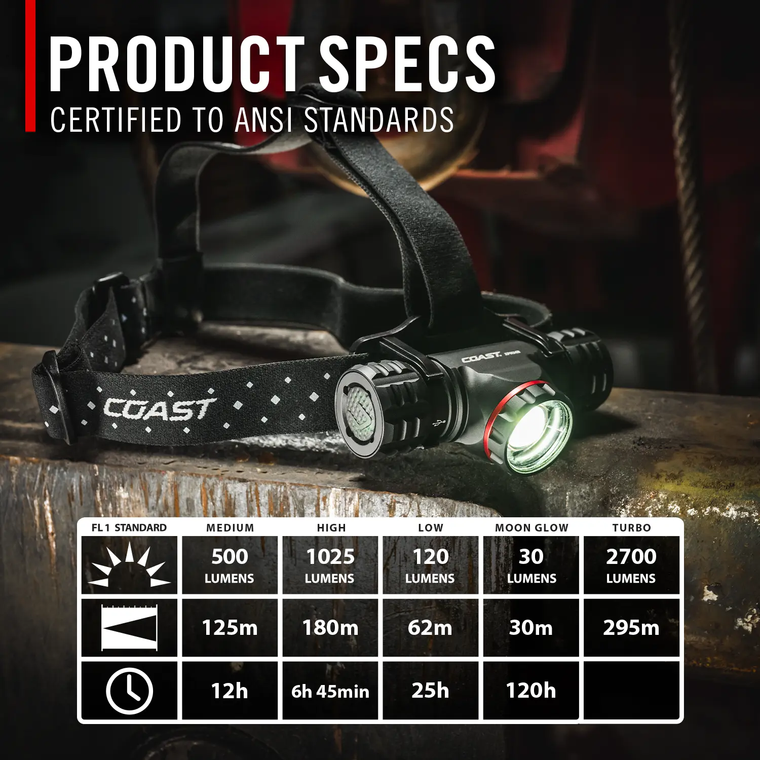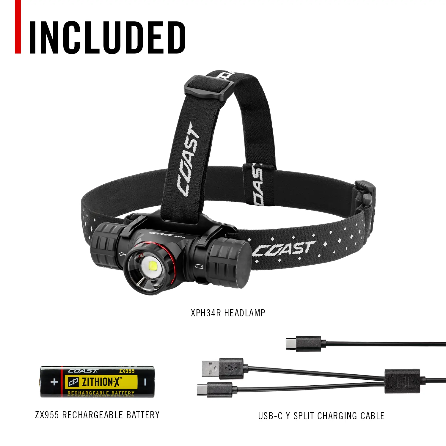 Go hands-free or hands-on with the brightest headlamp in our XPH line. Built to be worn or held in your hand, the COAST XPH34R peaks at 2700 lumens on Turbo Mode's temporary boost of increased light and features a dust-resistant and storm proof aluminum body that rolls in its bracket for directional lighting and also detaches to become a full-featured flashlight with a magnetic tail cap and built-in power indicator. The COAST-patented PURE BEAM® optical system with TWIST FOCUS™ enables seamless transitions between ULTRA VIEW FLOOD BEAM and BULLS-EYE™ Spot Beam. For versatility on the job, this Rechargeable Dual Power flashlight runs on a COAST ZITHION-X™ rechargeable battery (charging cable included) but can also operate on disposable lithium or alkaline batteries (purchased separately)—creating a go-anywhere lighting solution featuring the patented PURE BEAM® system and TWIST FOCUS™ optic for seamless transitions between Ultra View Flood Beam and BULLS-EYE™ Spot Beam.