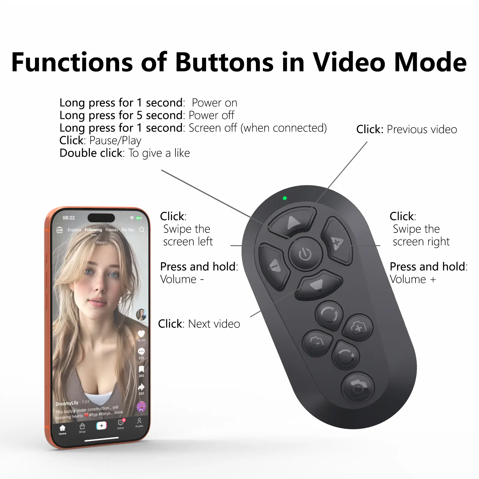 Wireless Scroller: This Xring Remote Control is designed for TikTok scrolling, offering a wireless scroller page Turner. Perfect for effortlessly navigating through your TikTok feed.