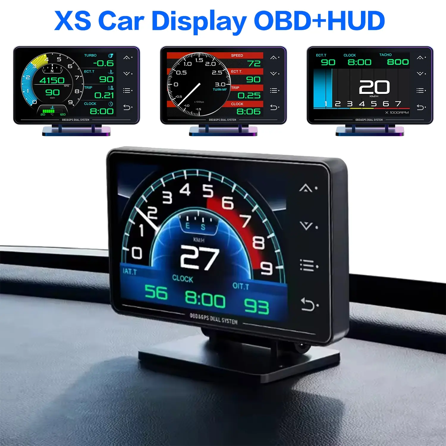 XS LCD Head-Up Display, GPS + Obd2 Scanner Car Diagnostic Tool, Multi-Function Hud Monitor, Angle Gauge, Pulse Meter, Speedometer