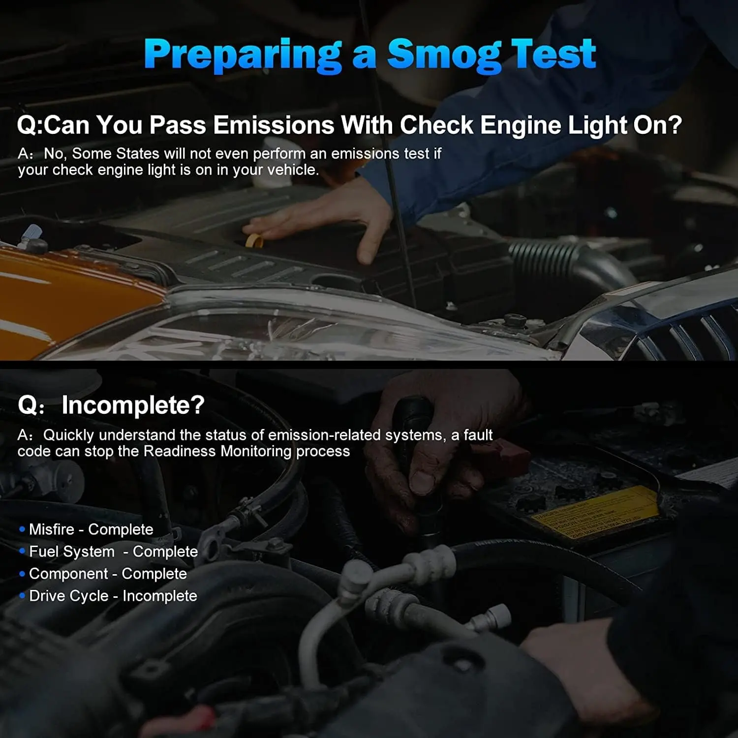 ·TURN OFF CHECK ENGINE LIGHT & SMOG READY – Instantly identify why the check engine light (MIL) is on, see severity, and find possible fixes. Check I/M readiness to prepare your car for annual smog tests and avoid costly failures.