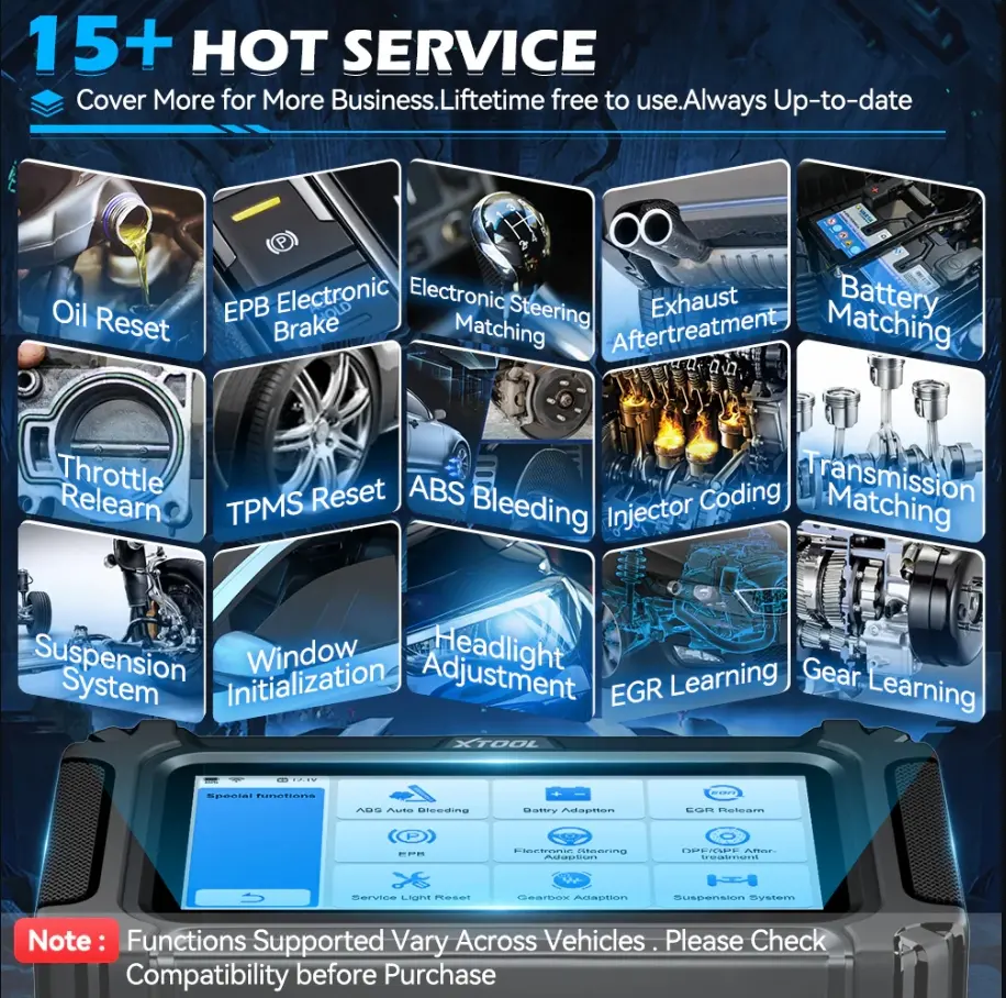 ·Electric Parking Brake (EPB) Reset, Steering Angle Sensor (SAS) Calibration, BMS Reset, Throttle Body/Position Relearn, TPMS Reset, ABS Bleeding, Reset oil light, Gearbox Match, Crank Sensor Relearn, and more, making it perfect for everyday maintenance, small repairs, workshop and mobile mechanics.