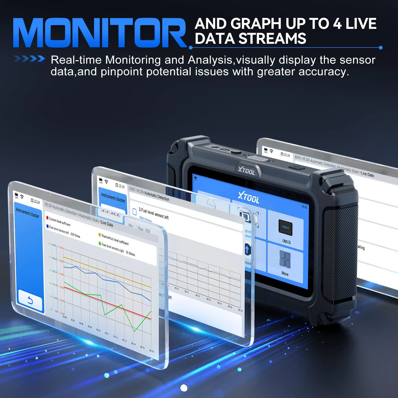 ·Support full system diagnostics, reading fault codes from all vehicle systems, including engine, transmission, ABS, airbags, TPMS and more, giving you a complete picture of your vehicle's health. And up tp 4 Graph Data Streams can visualize vehicle sensor data more intuitively.