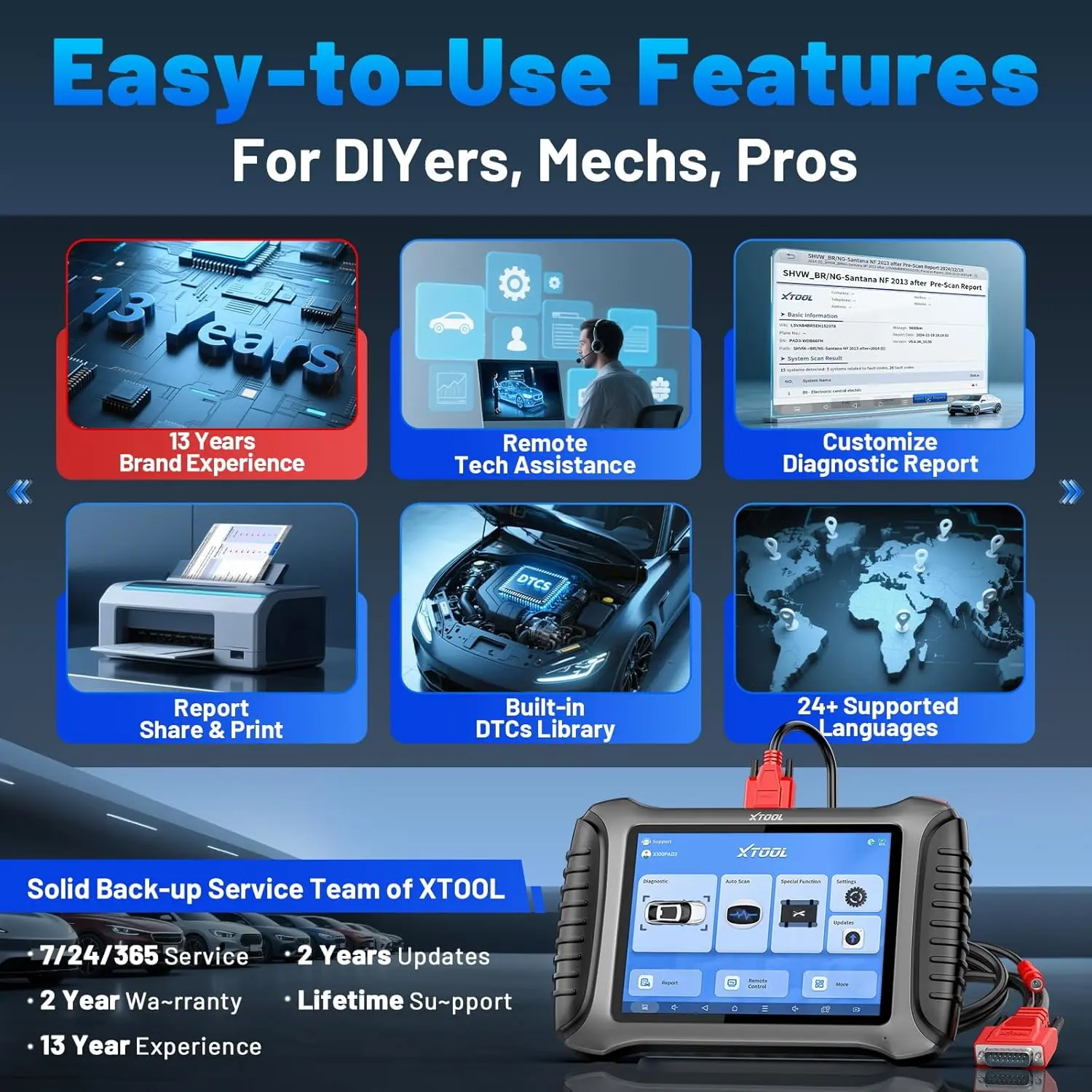 2 Years Free Updates & Dedicated Support:Enjoy 2 years of free software updates via one-tap Wi-Fi. After the update period, your tool remains fully functional with all installed features—no forced subscriptions. Backed by XTOOL’s trusted technical help and warr~anty for worry-fr.ee ownership.