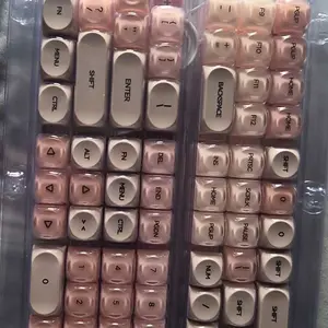 I haven't set these keycaps on my keyboard yet but they feel nice and they are so pretty. the package came fast and undamaged along with my keyboard. Will be buying more in different colors.