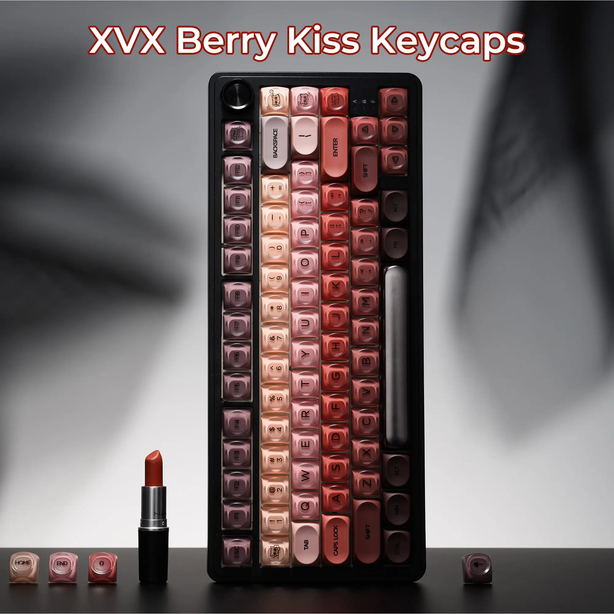 Gorgeous caps. Very similar to the lofree lipstick. Love the chromey space bar. Nice touch.
