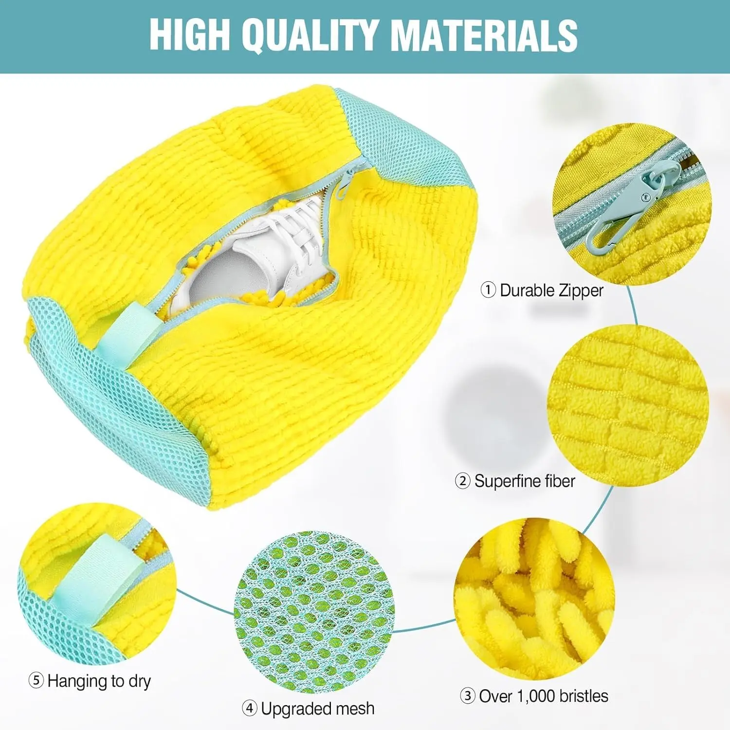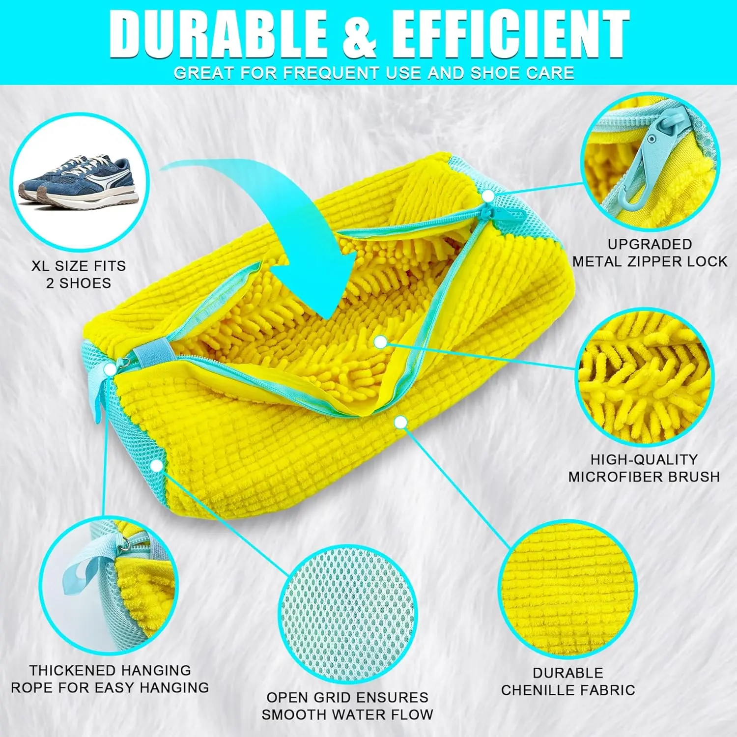 ·【360° Deep Clean for Shoes】Crafted with high-quality and soft chenille microfiber & polyester, these shoe washing bags effectively clean shoes while protecting them from damage, ensuring a deep clean without abrasion.