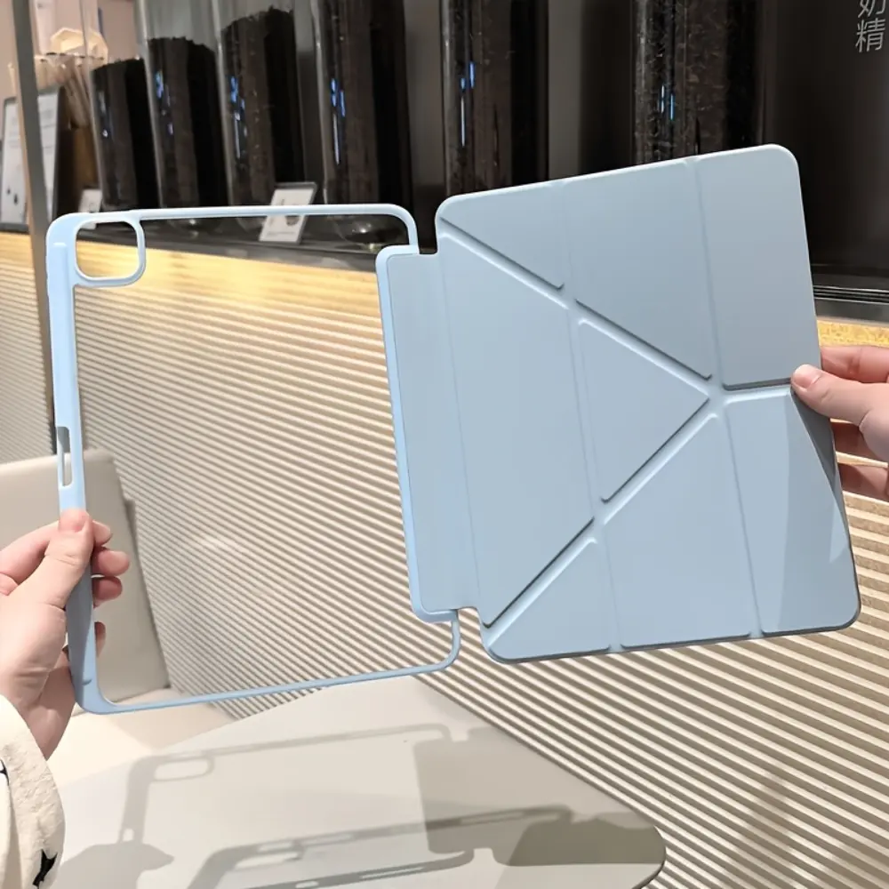 Y-fold tri-fold iPad case with multiple viewing angles, minimalist solid color design. Auto sleep/wake, shockproof, built-in pencil holder. Compatible with iPad mini 6/7, Air 4/2024, Pro 2020/2021/2022/2024. Ideal gift for you!
