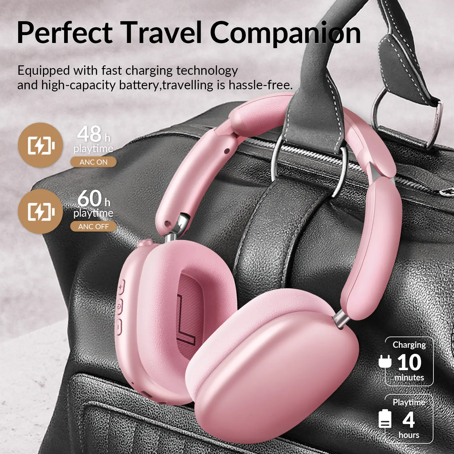 Wentronic Y02 ANC Over-Ear Headphones 60H Battery Life Starlight Color Comfort Fit Travel Essential