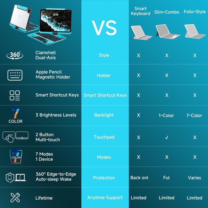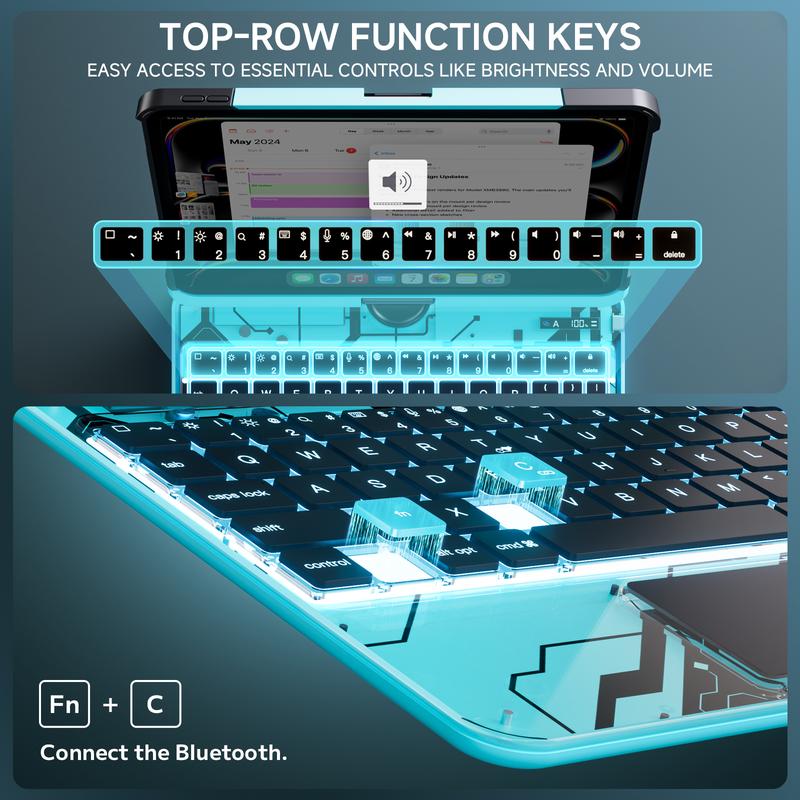 Ever wished your iPad case could keep up with your busy day? Meet the Y2K Dreamy Blue 360° Rotatable Keyboard Case, designed just for the 2025 iPad 10th Gen 10.9-inch and 11th Gen 11-inch models. Whether you're typing up emails, sketching ideas, or binge-watching your favorite shows, the 360° hinge lets you adjust the angle effortlessly for every task. The transparent back cover lets your iPad’s sleek design shine through while providing tough protection against drops and scratches. The responsive touchpad makes navigation a breeze, and the built-in magnetic stylus holder keeps your Apple Pencil charged and ready to go. Plus, the 7-color backlit keyboard adds a splash of style and helps you type comfortably in any lighting. Lightweight yet durable, this case is perfect for on-the-go use. Inside the box, you’ll get the rotatable keyboard case with touchpad and stylus holder, ready to transform your iPad experience. Grab yours during our Black Friday Super Sale and bring style, function, and protection all in one cool package!