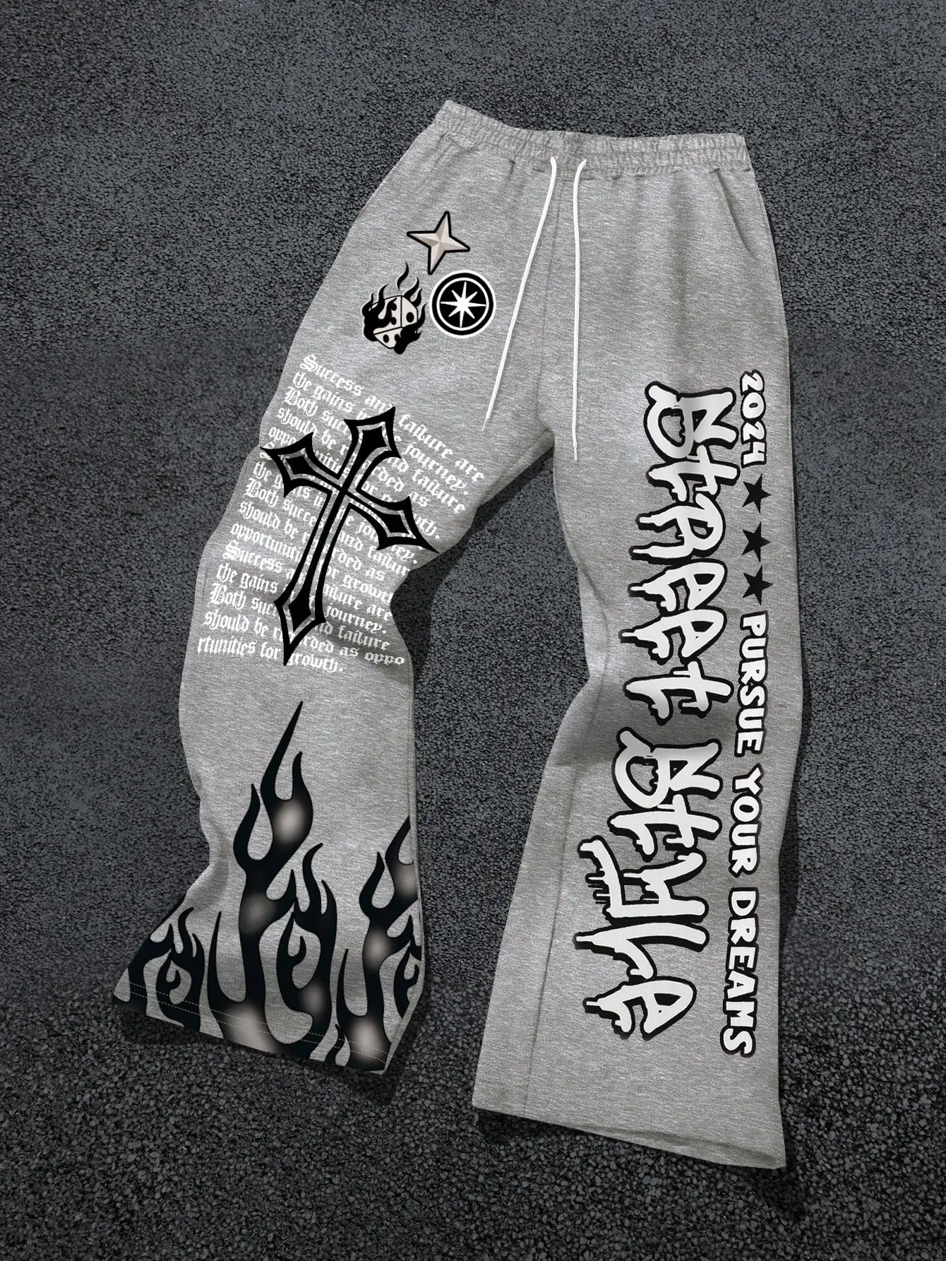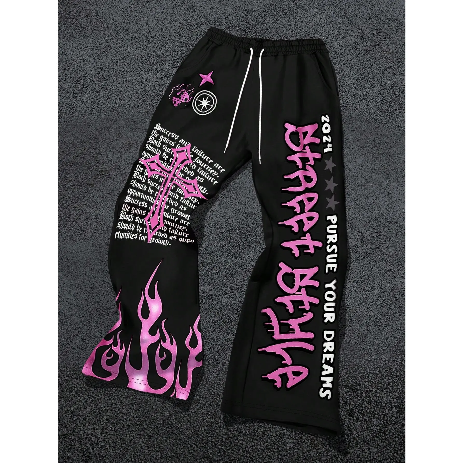 ·Feature: Cross and fire pattern, letter print, drawstring, elastic waist, high waist, flared leg, long length, gothic pants for men