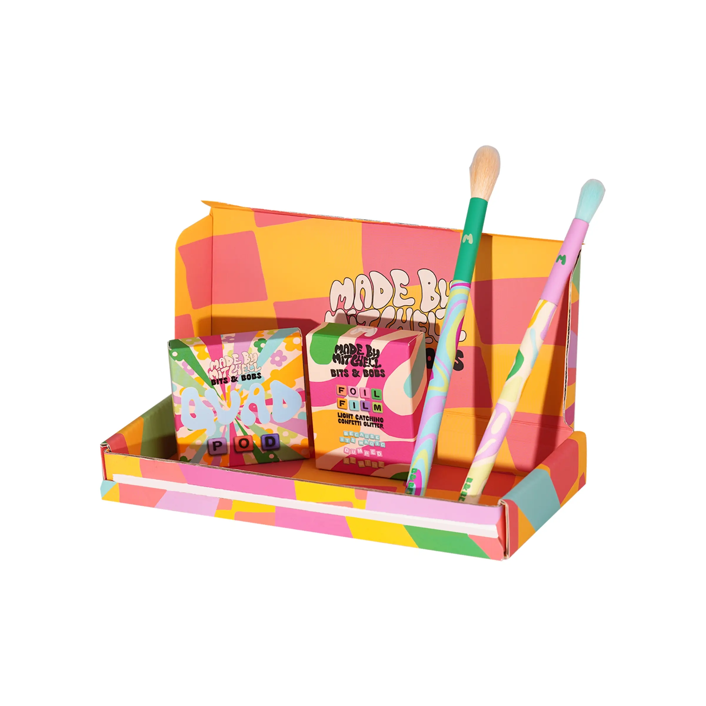 Bring Y2K vibes to your makeup routine with the Bits & Bobs Collection, featuring playful, retro-inspired eye kits that let you mix, match, and create endless looks. Each bundle is curated with Quad Pods, foil effects, and precision brushes to give you bold, versatile, and fun eye makeup in one set.