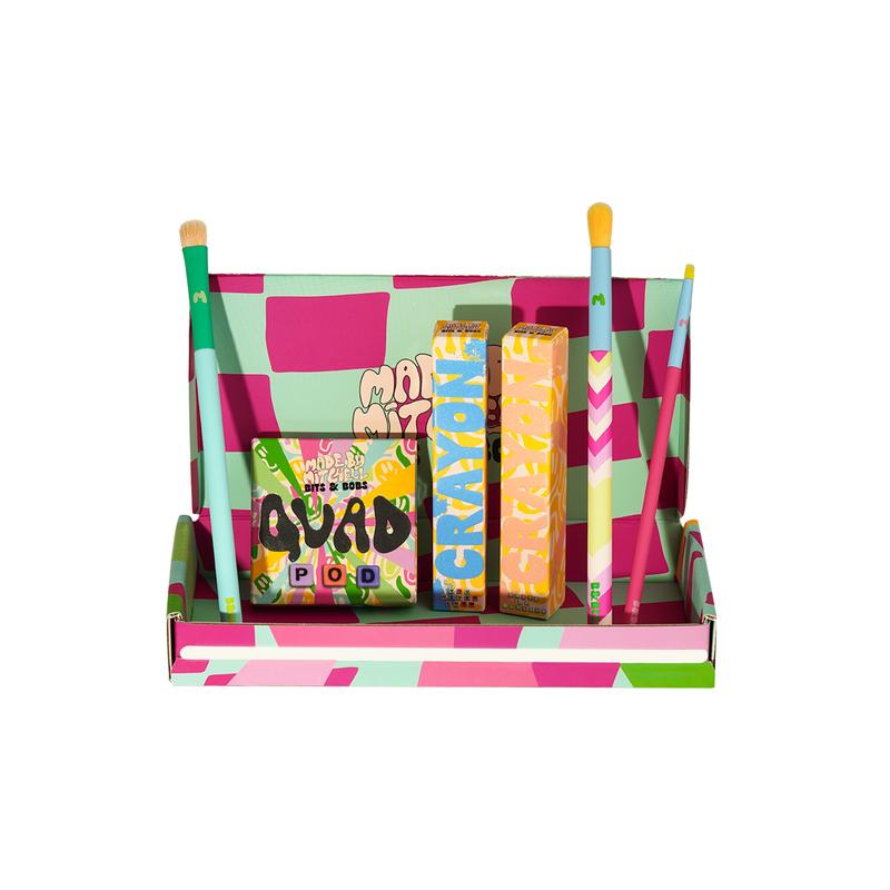 Bring Y2K vibes to your makeup routine with the Bits & Bobs Collection, featuring playful, retro-inspired eye kits that let you mix, match, and create endless looks. Each bundle is curated with Quad Pods, foil effects, and precision brushes to give you bold, versatile, and fun eye makeup in one set.