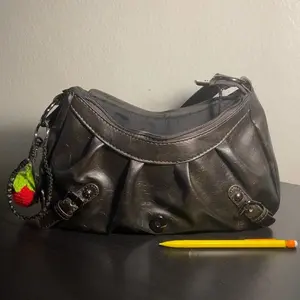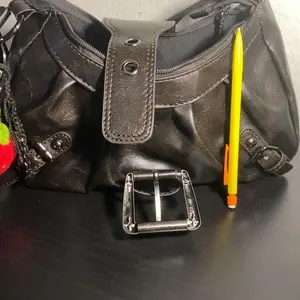 CUTEE!!! I thought it would be more browner than black but im not mad about it. The buckle in the front is a magnet but can unbuckle depending on how u use it. Its so cute!! there a pencil for size reference. It’s not that tiny and it fits alot!!