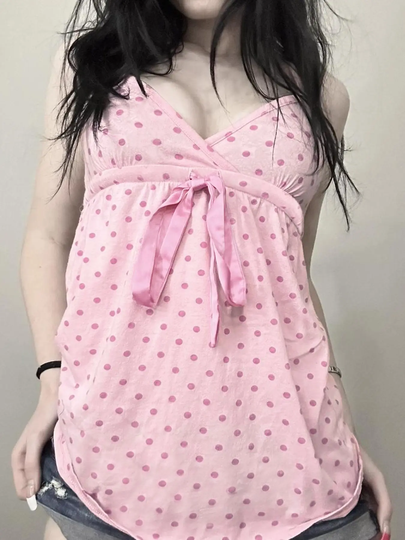 5. Y2K Sweet Cute Bow Tie Polka Dot Sleeveless A-Line Tank Cami Top for Women, Fitted Long Backless Design, All Seasons Fashion