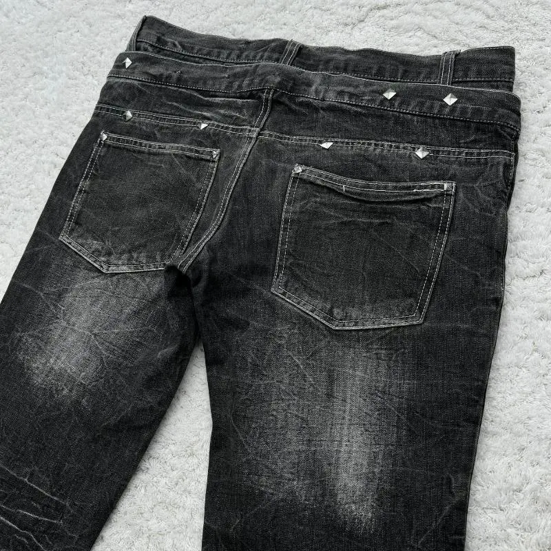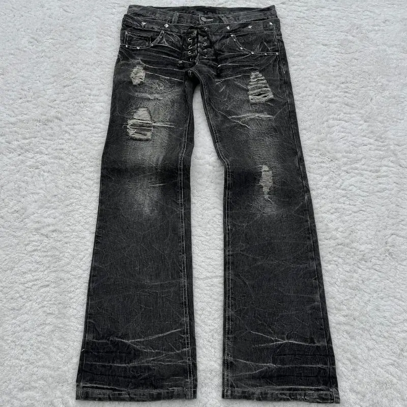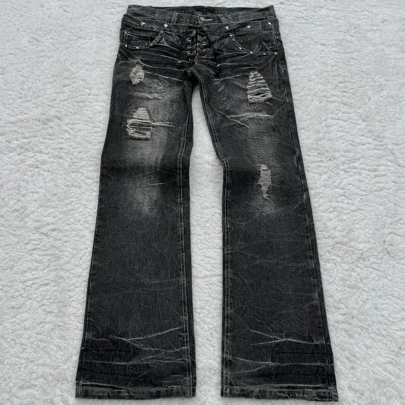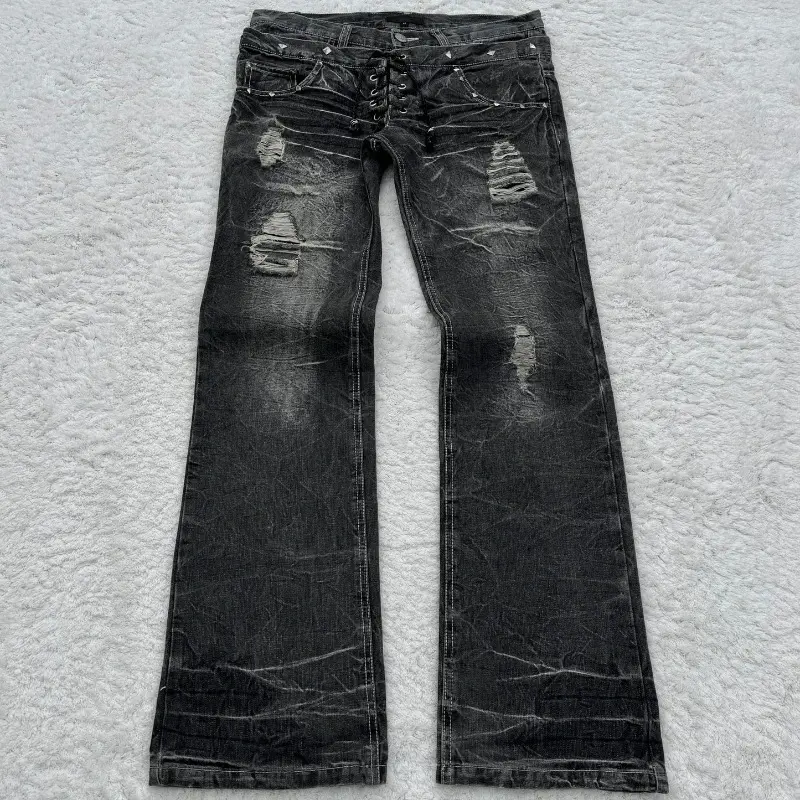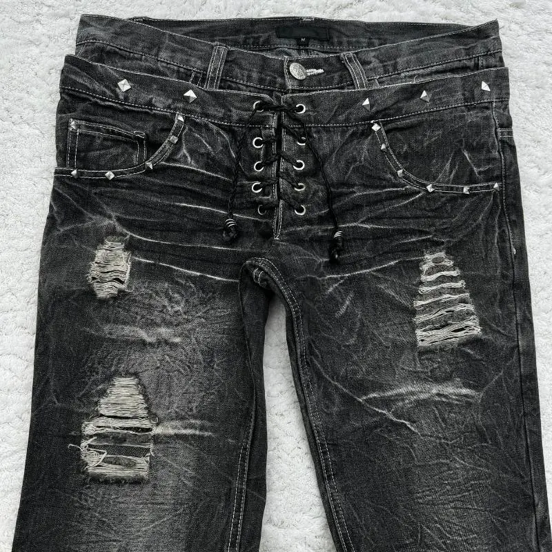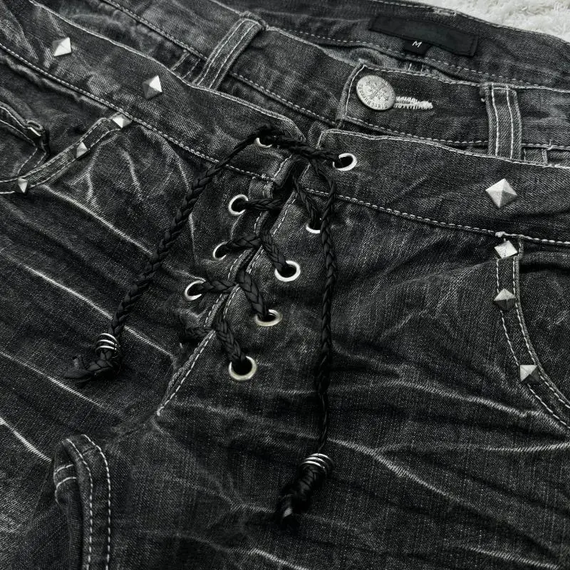 Y2KWashedJeansGothicRetroMicroFlaredDoubleWaistedLaceUpPantsMenWomenStreetwearHighQualityDesignSenseTrousers
