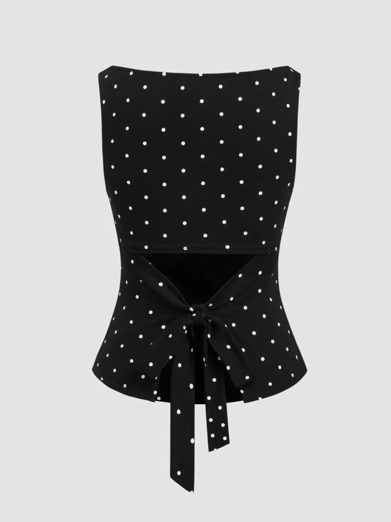 Y2K Women's Polka Dot Tank Top with Tie Back, Sleeveless Bow Detail Design, Stylish and Casual Summer Wear