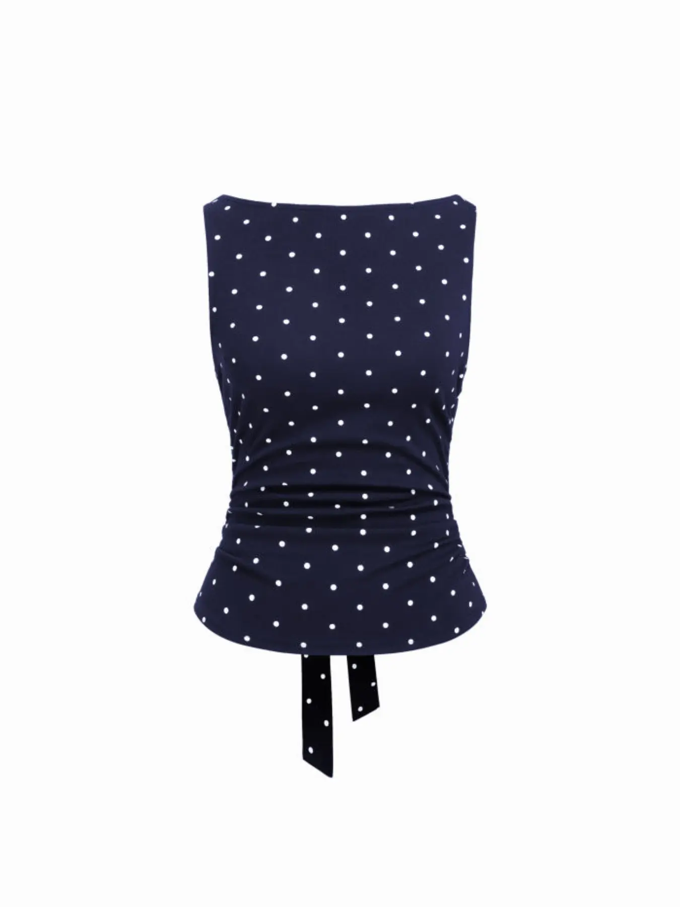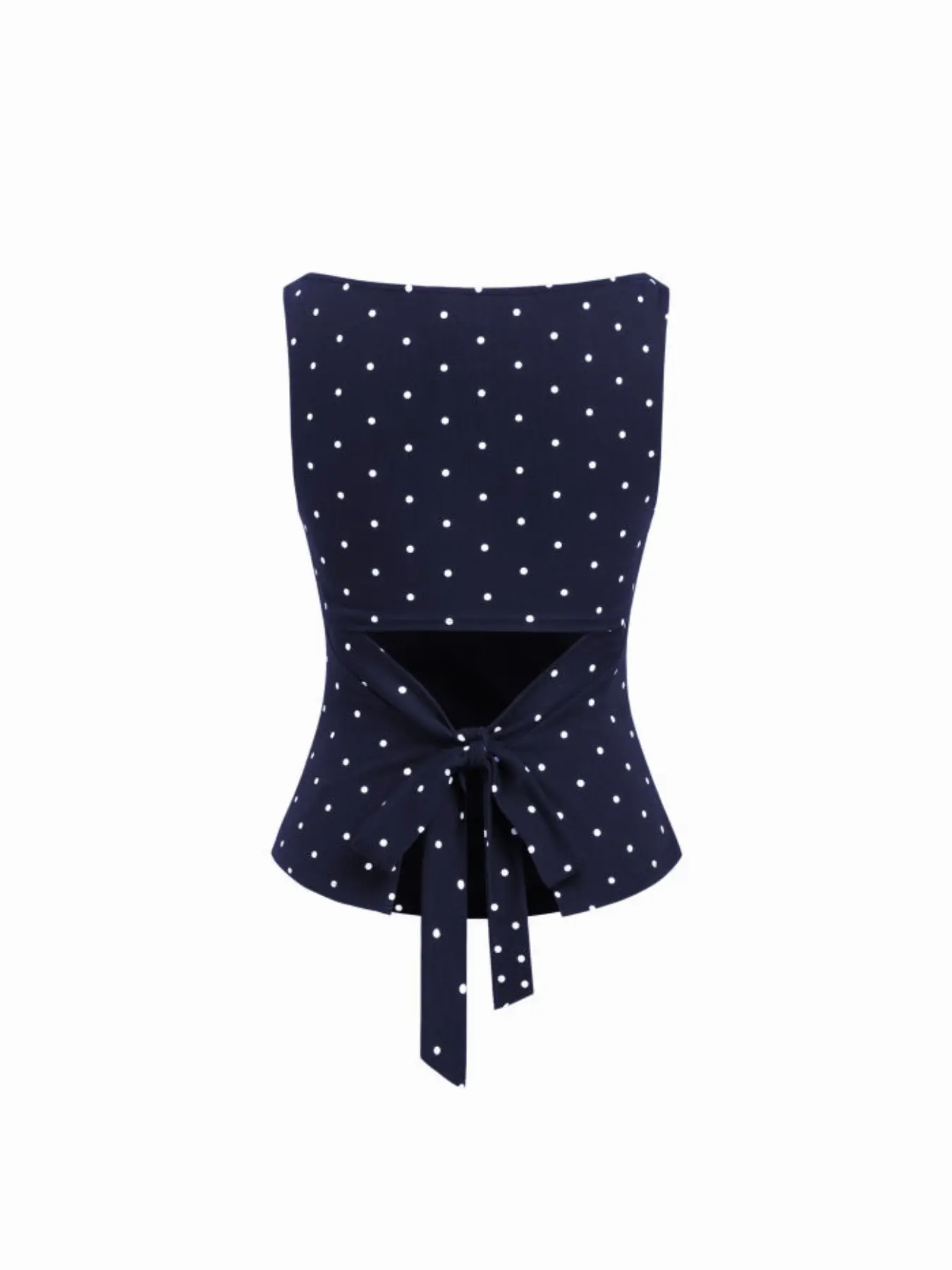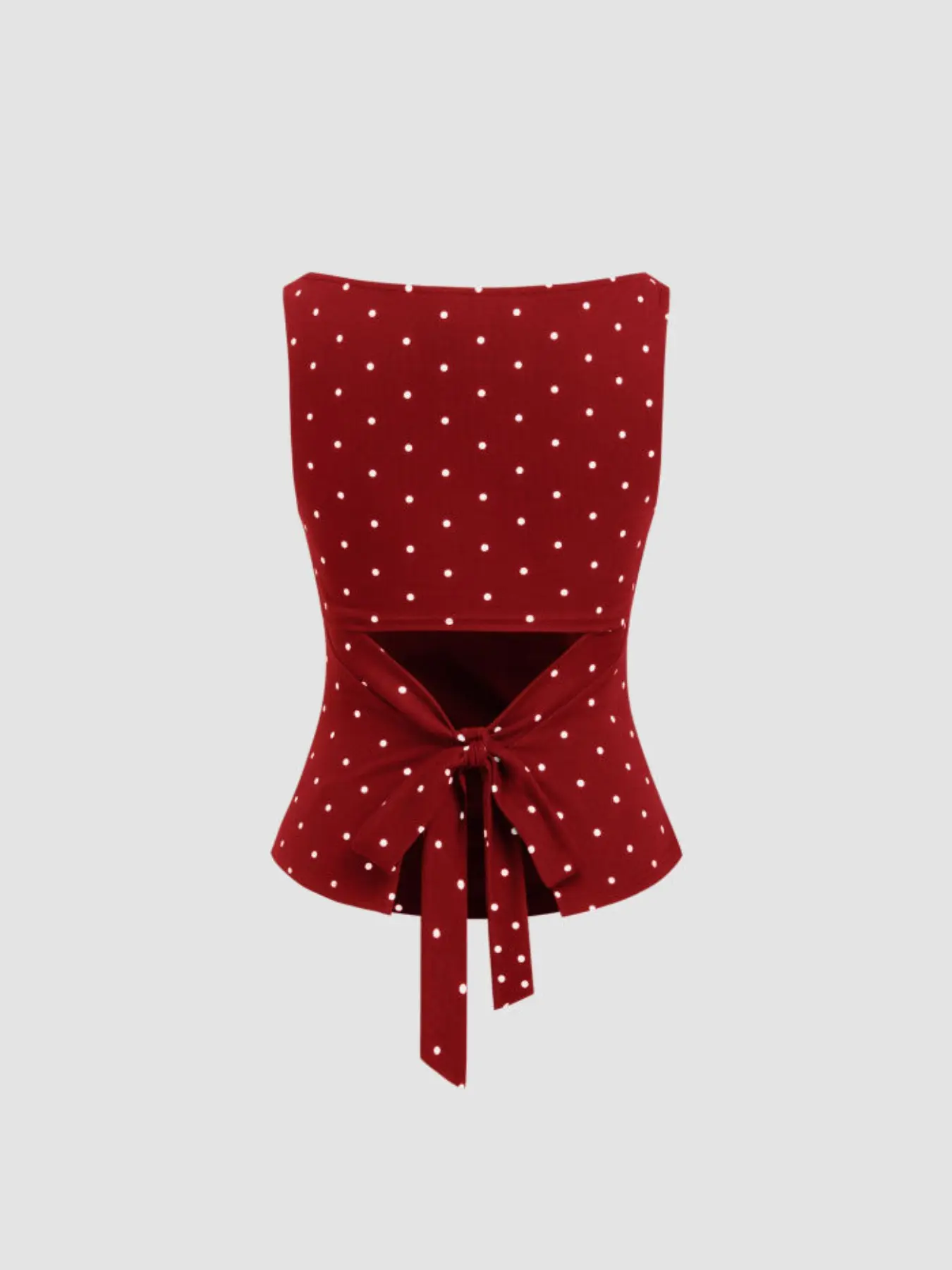 5. Y2K Women's Polka Dot Tank Top with Tie Back, Sleeveless Bow Detail Design, Stylish and Casual Summer Wear