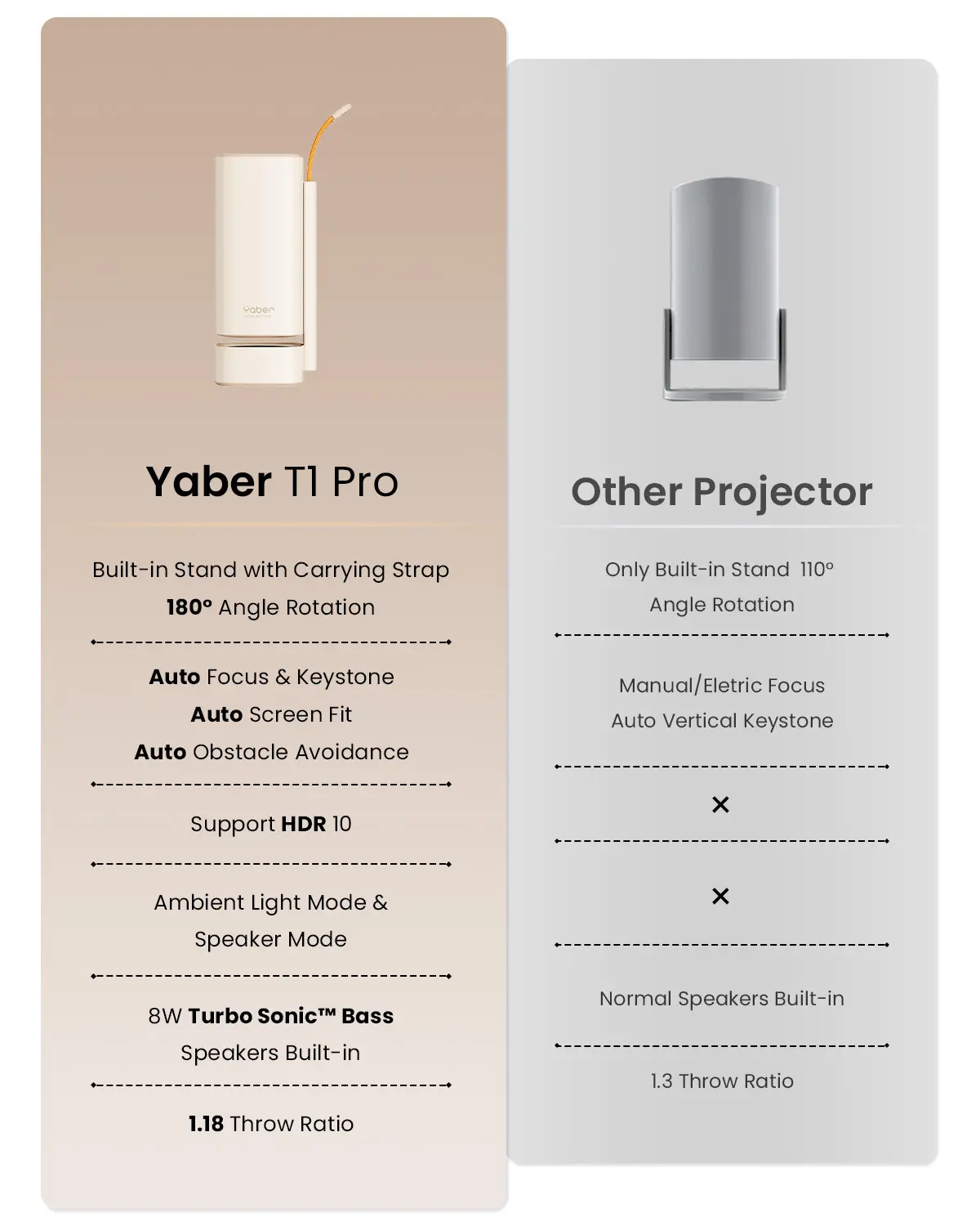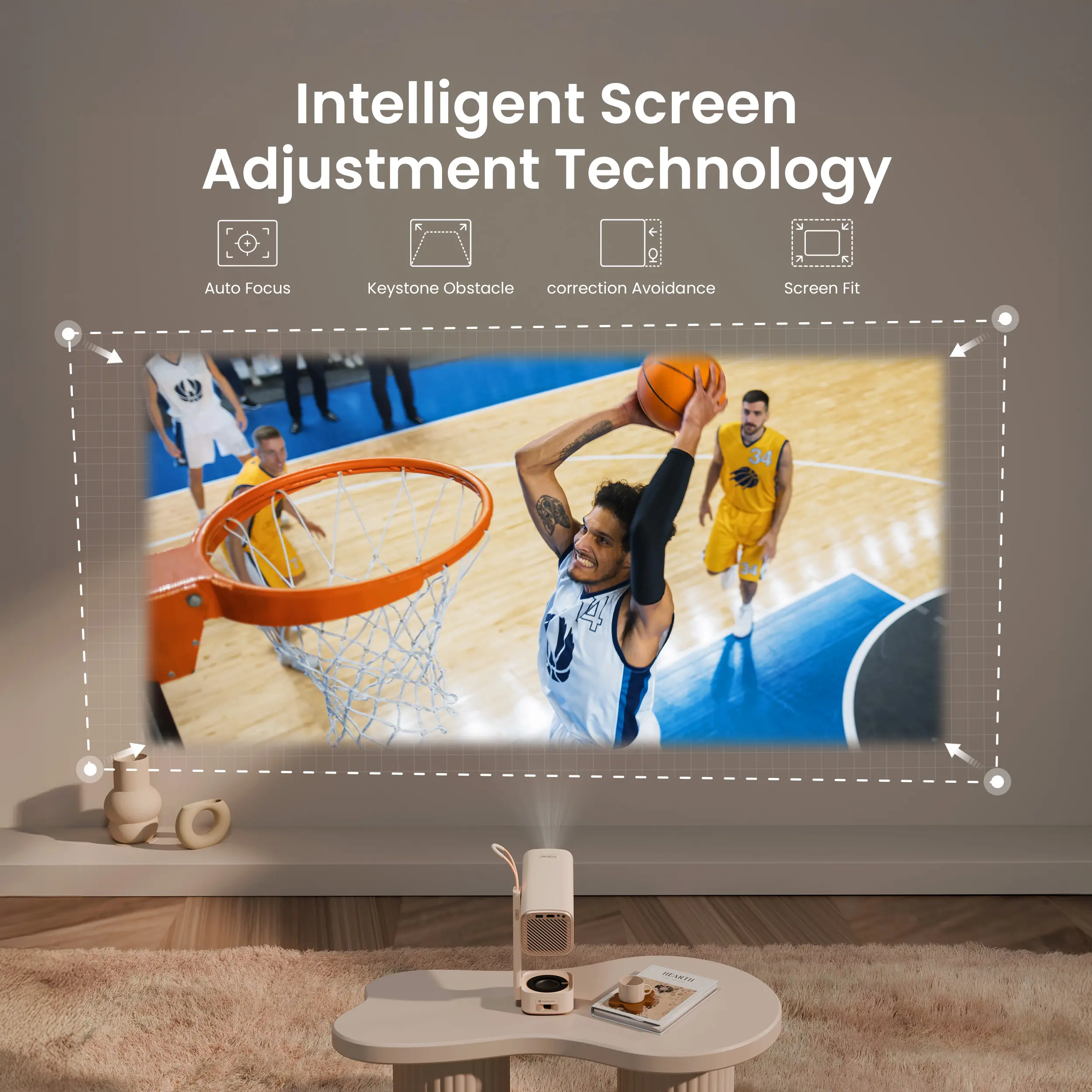 ·【Smart Auto Focus & Auto 6D Keystone Correction】Effortlessly getting a clear and well-aligned image in 5 Seconds after powering on! YABER 2023 4k projector comes with auto-focus and 6D auto-keystone technology, save hassle of manually adjusting, easily set up for movies or games.With the built-in displacement gyroscope and sensor, this smart projector can automatically detect changes and movement in the environment, adjusting the picture accordingly to ensure it stays clear.